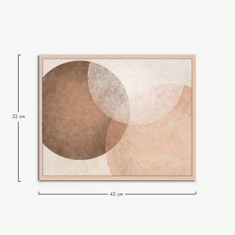 Das abstrakte Wandbild wird in einem naturfarbenen Rahmen geliefert, der für seine Langlebigkeit und natürliche Schönheit bekannt ist. Die Holzrahmen präsentieren das abstrakte Wandbild auf eine Weise, die ihm Tiefe und Dimension verleiht und es zu einem echten Blickfang in Ihrem Interieur macht.