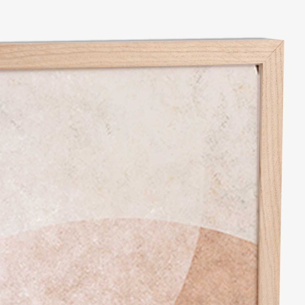Diese moderne Wanddeko mit Holzrahmen eignet sich ideal, um Ihrem Wohn-, Schlaf- oder Arbeitszimmer eine elegante und zeitgemäße Atmosphäre einzuhauchen. Das minimalistische Design des naturfarbenen Rahmens sorgt dafür, dass die abstrakte Wandkunst im Vordergrund steht, während der Rahmen dem Wandbild eine zusätzliche Note verleiht.