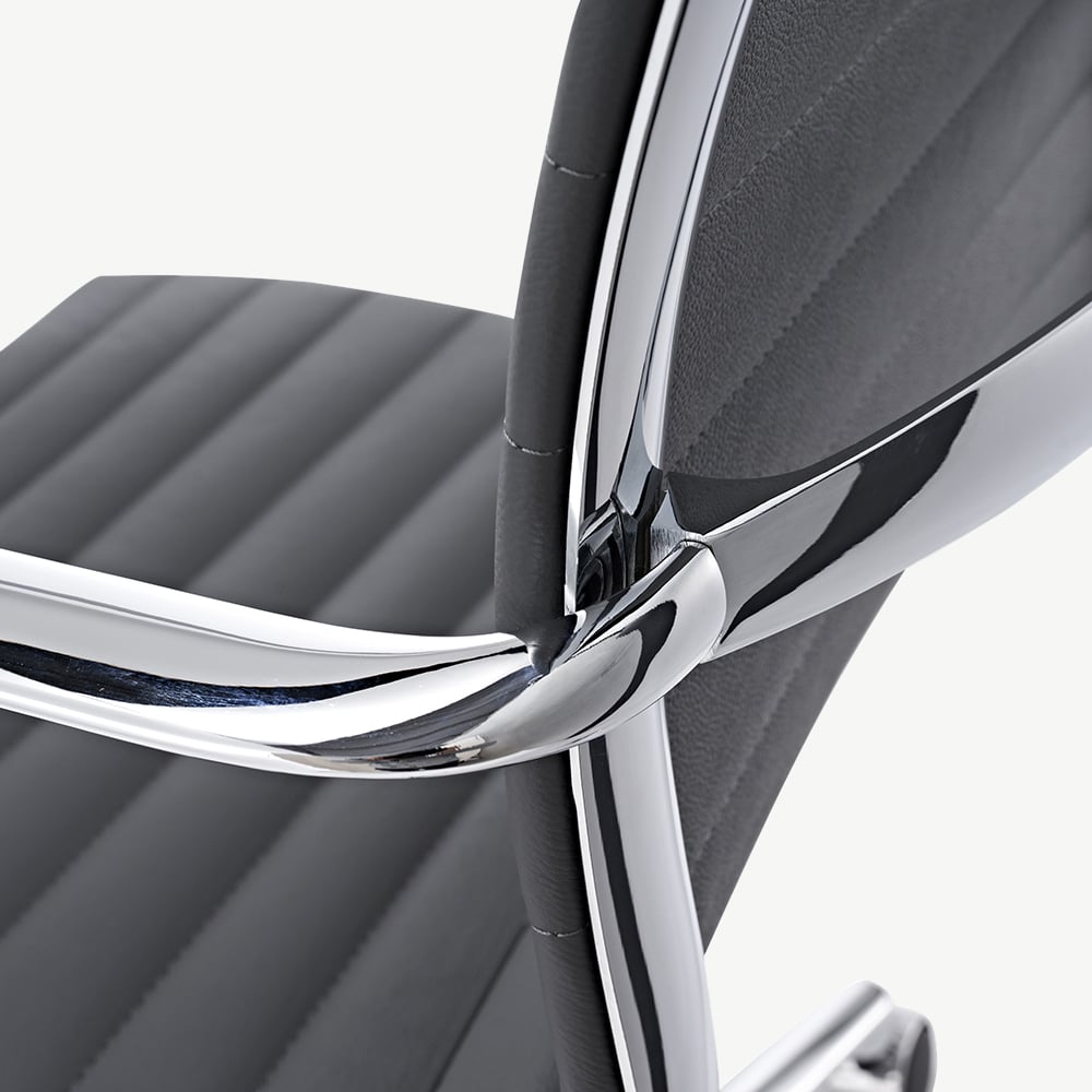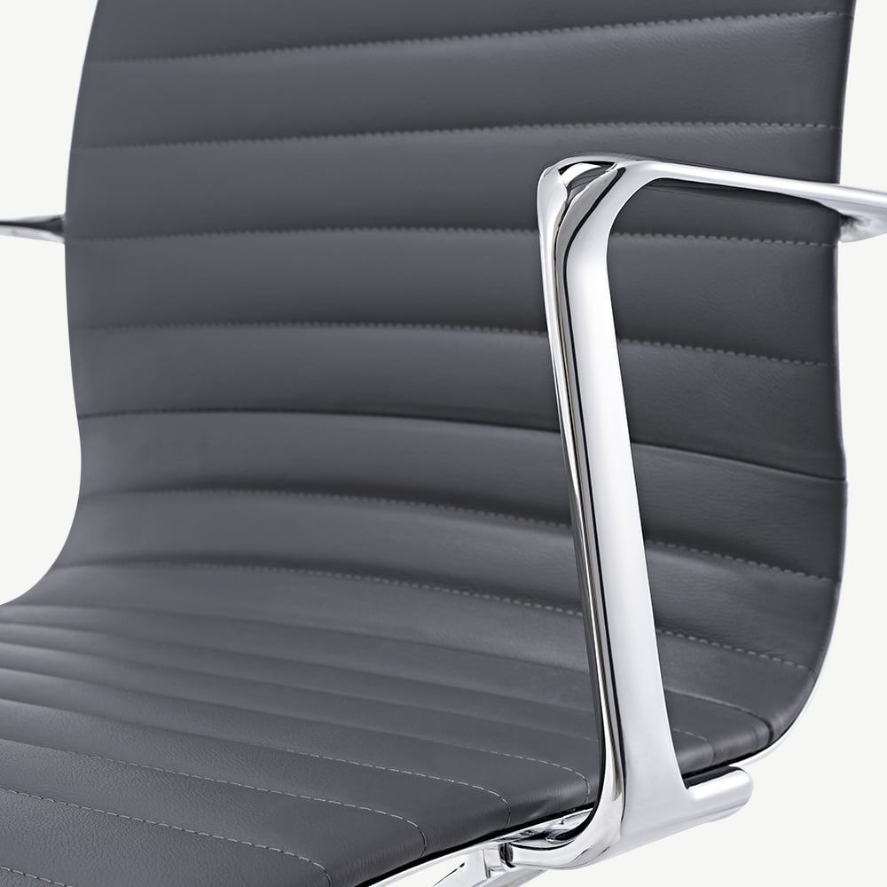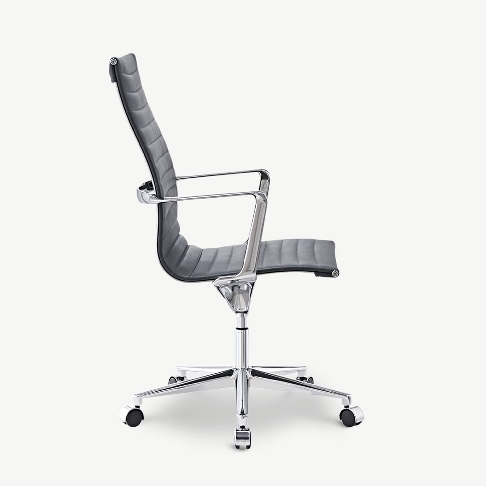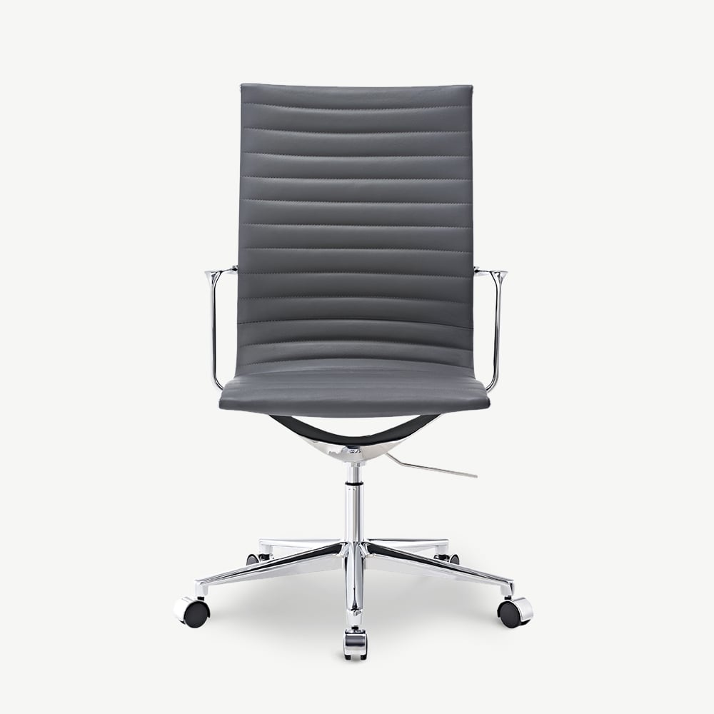 Akira Grauer Leder-Bürostuhl mit gerippter Polsterung und hoher Rückenlehne