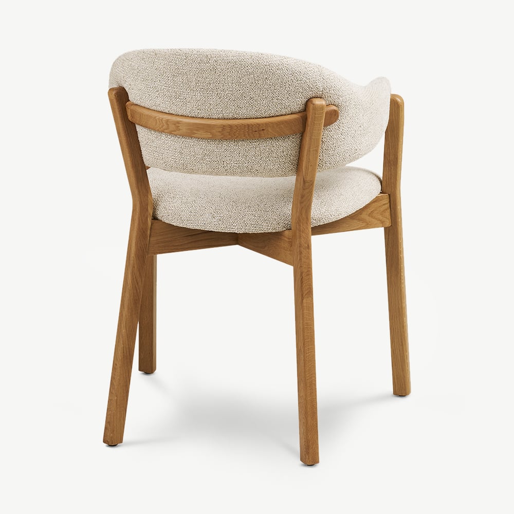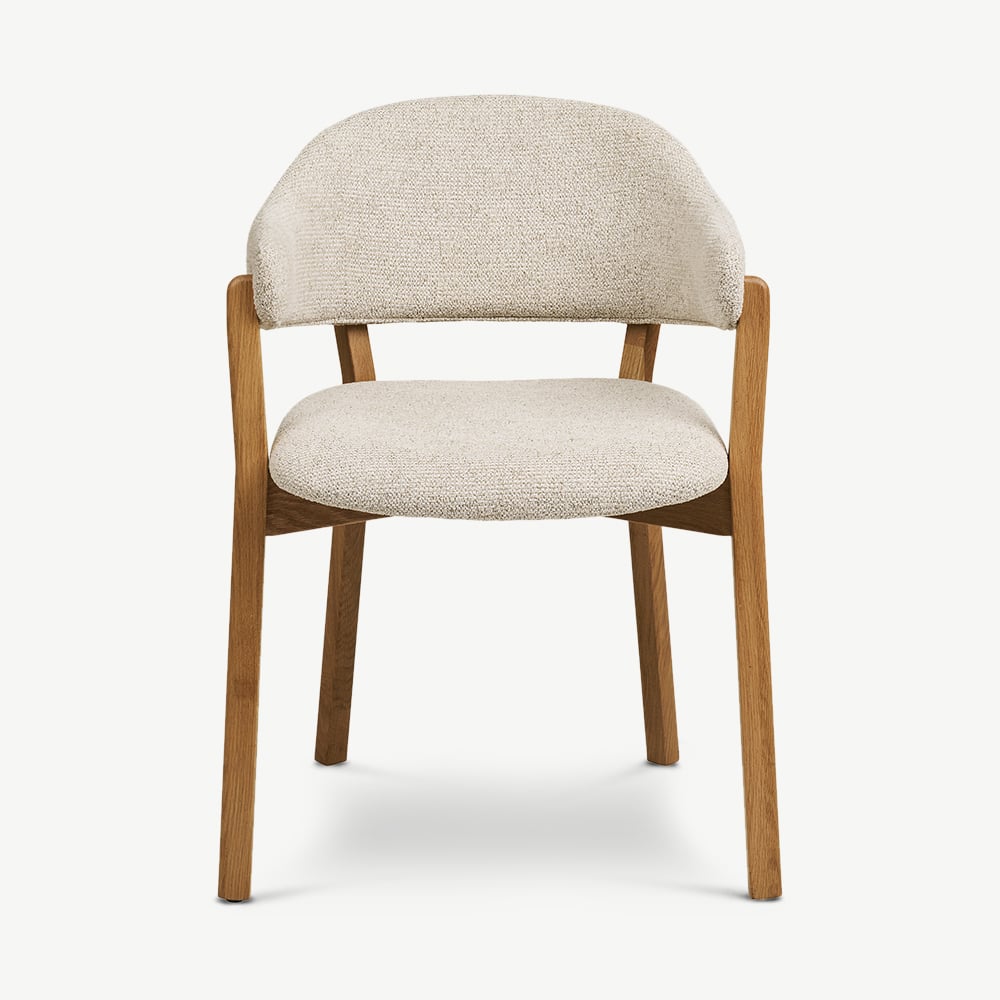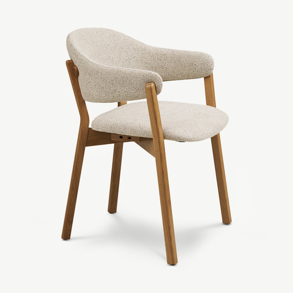 Arden Esszimmerstuhl aus beigefarbenem Stoff mit Armlehnen und Eichenbeinen