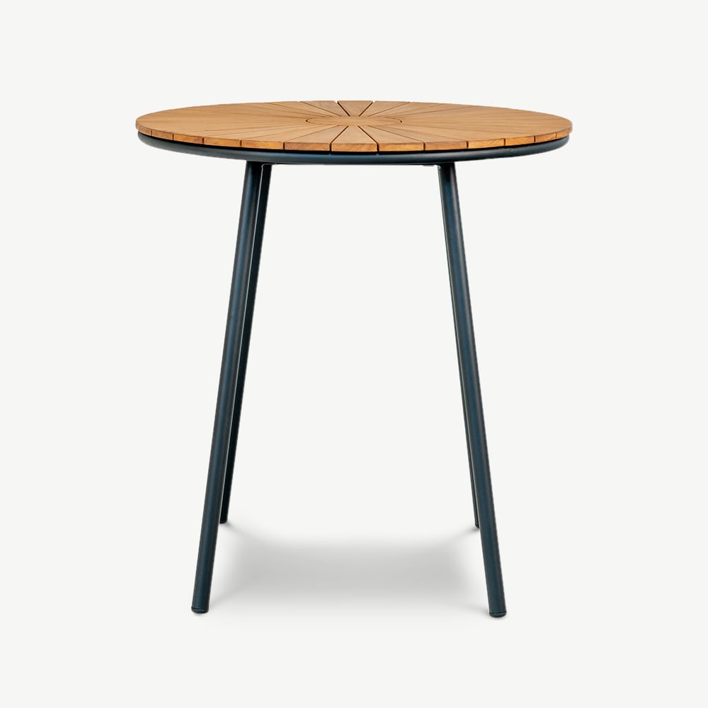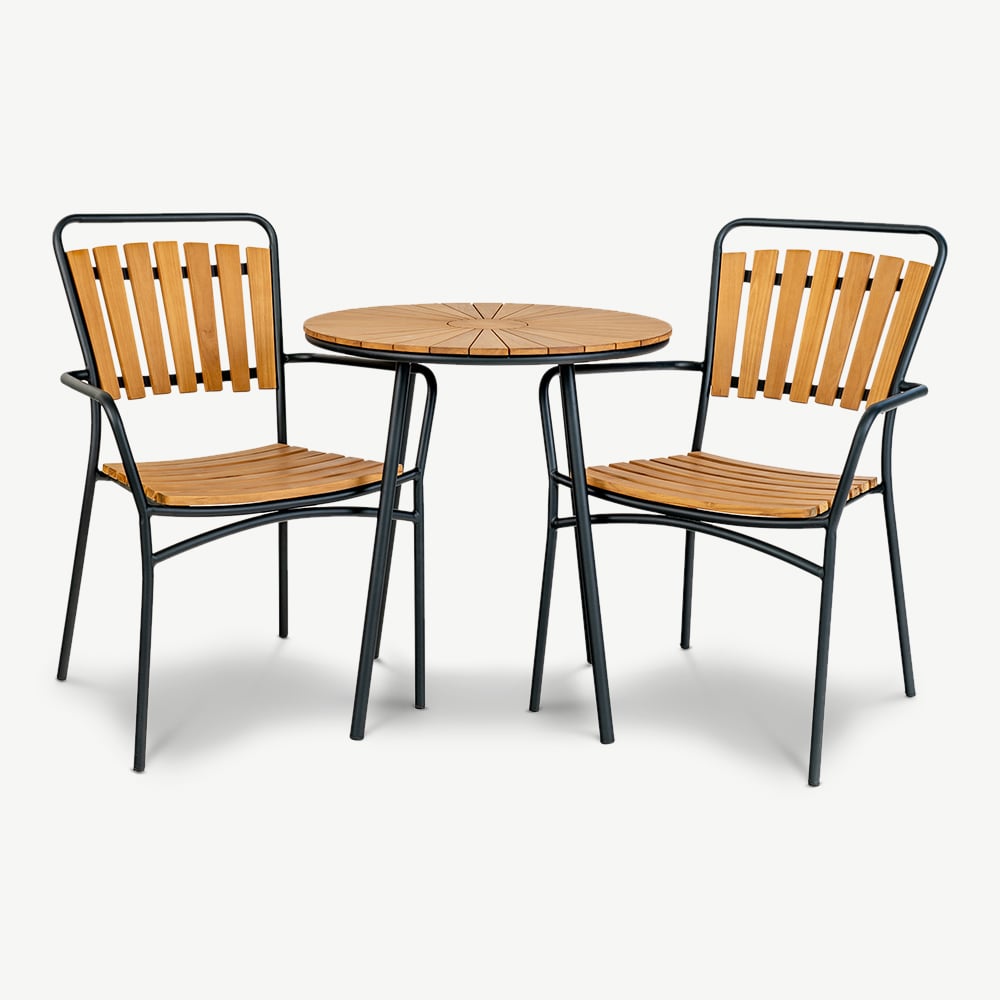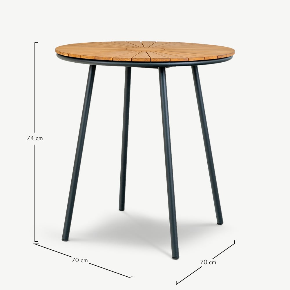 Verbessern Sie Ihr Café-Erlebnis mit dem Beckett Bistrotisch mit naturfarbenem Teakholz und Schwarz