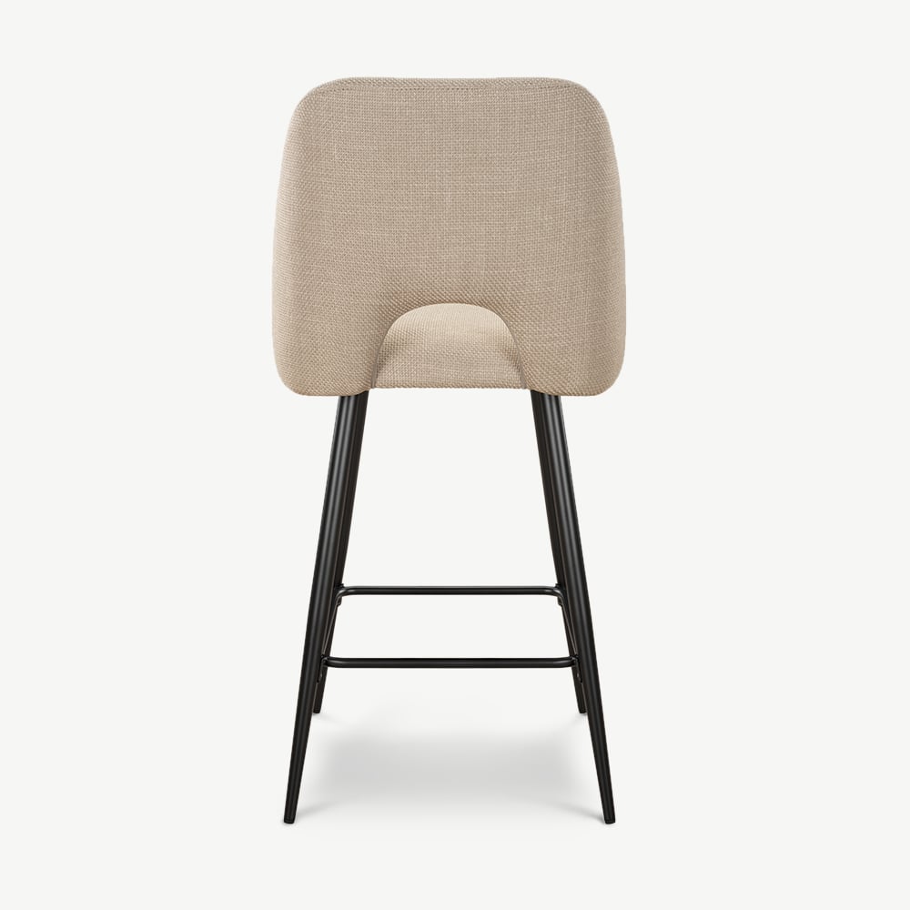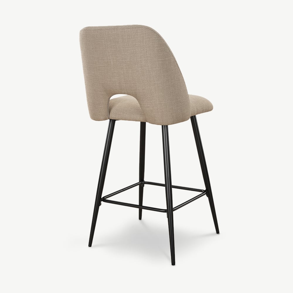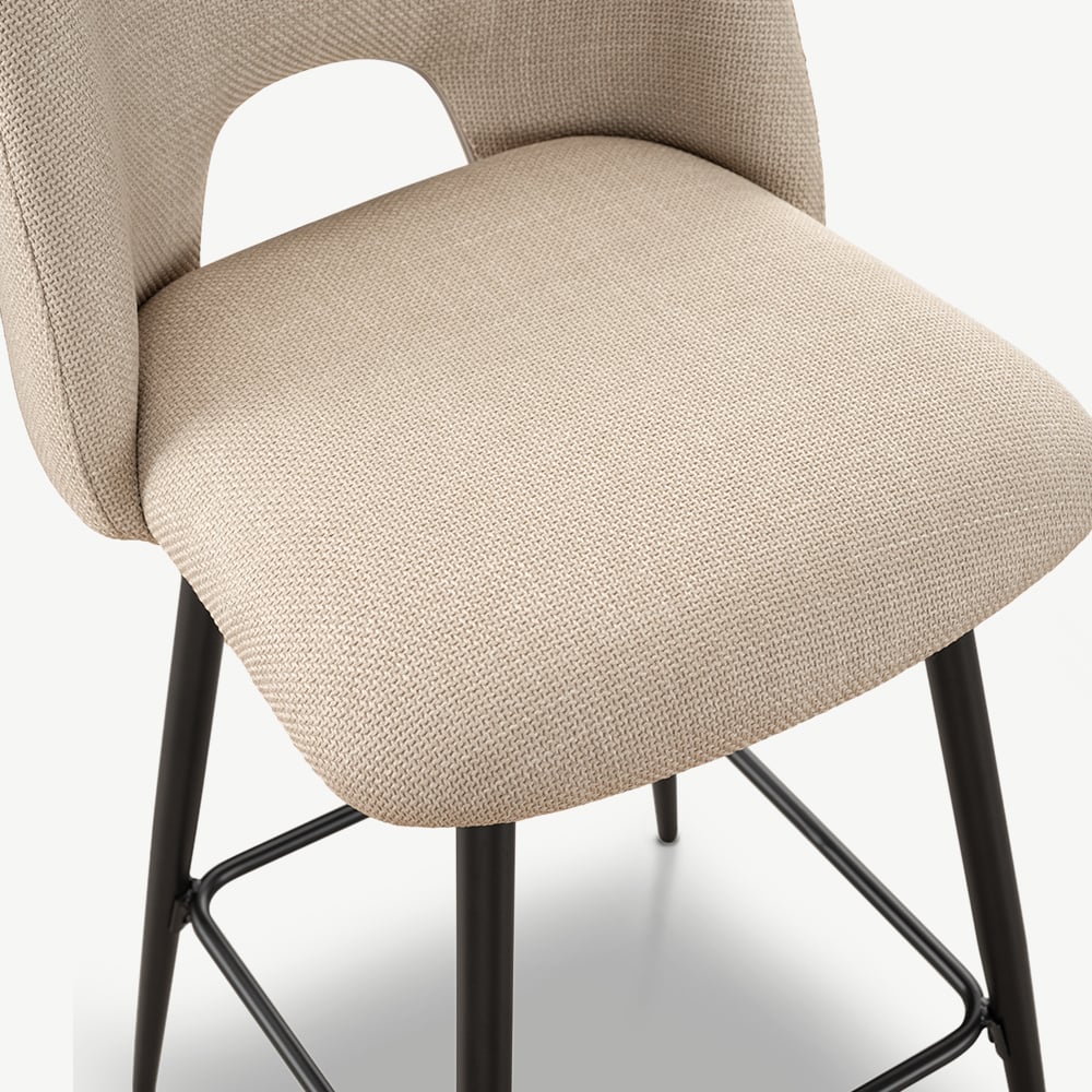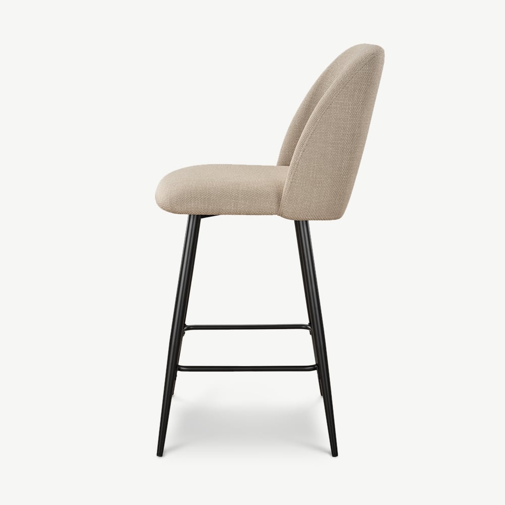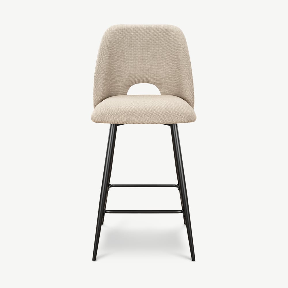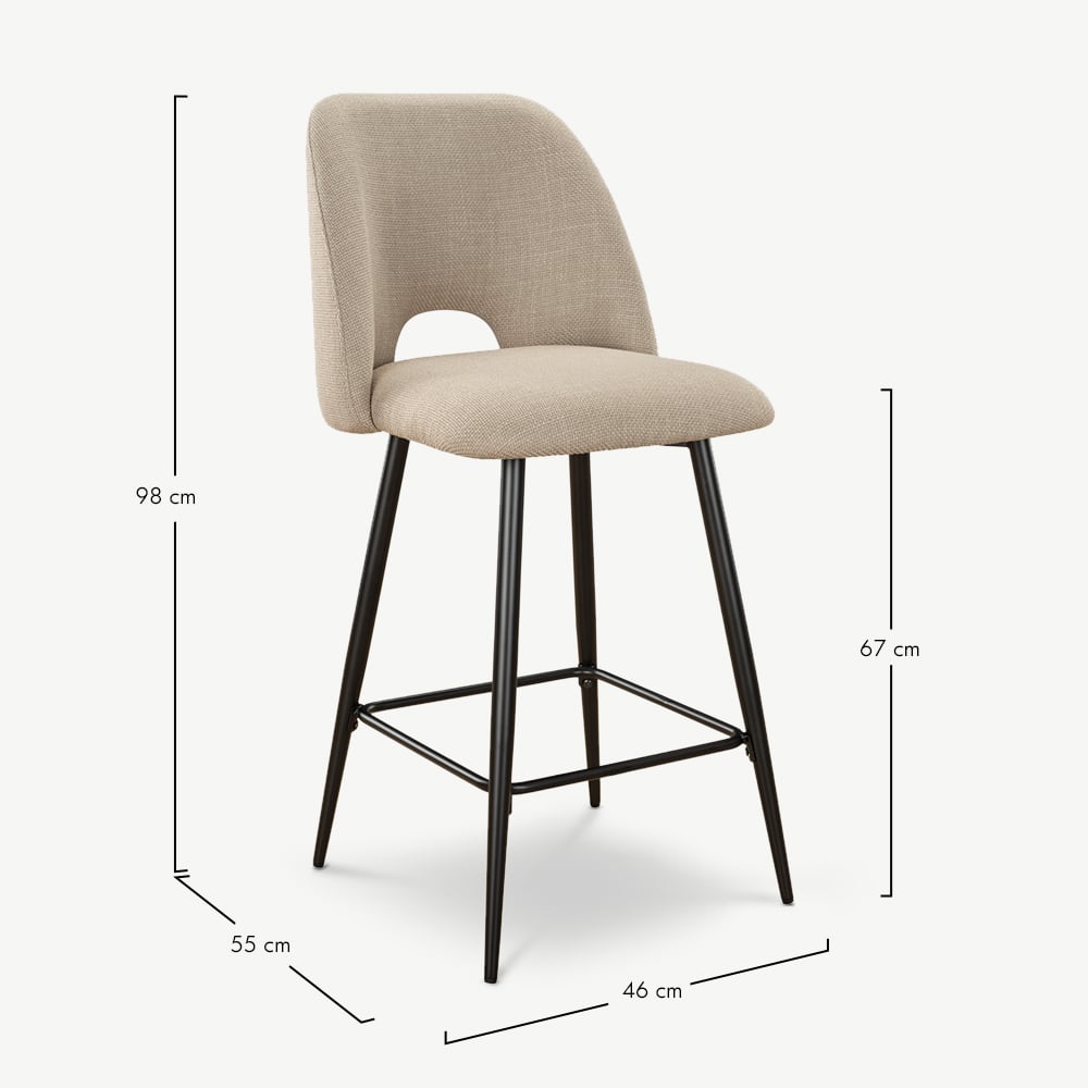 Caio Küchenhocker aus beigefarbenem Stoff mit schwarz beschichteten Metallbeinen und Fußstütze