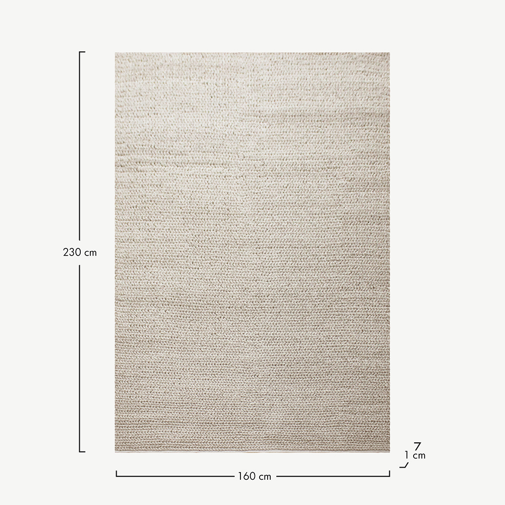 Calista ist nicht nur ein Teppich, sondern eine Geschichte, ein Zeugnis der Hingabe erfahrener Kunsthandwerker. Jeder einzelne Faden, sorgfältig von Hand gewebt, fügt sich zu einem weichen und strapazierfähigen Gewebe zusammen. Die organische Textur dieses Teppichs ist nicht nur ein faszinierender Blickfang, sondern fühlt sich auch herrlich weich an und lässt sich wunderbar barfuß begehen.Dimensions