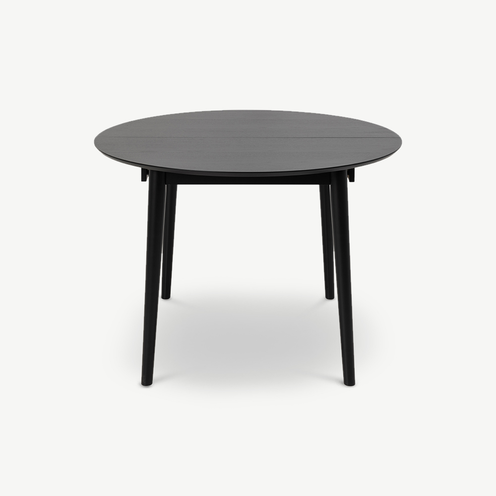 Devi Ausziehbarer Runder Esstisch, Schwarzes Holz - Ø115 cm