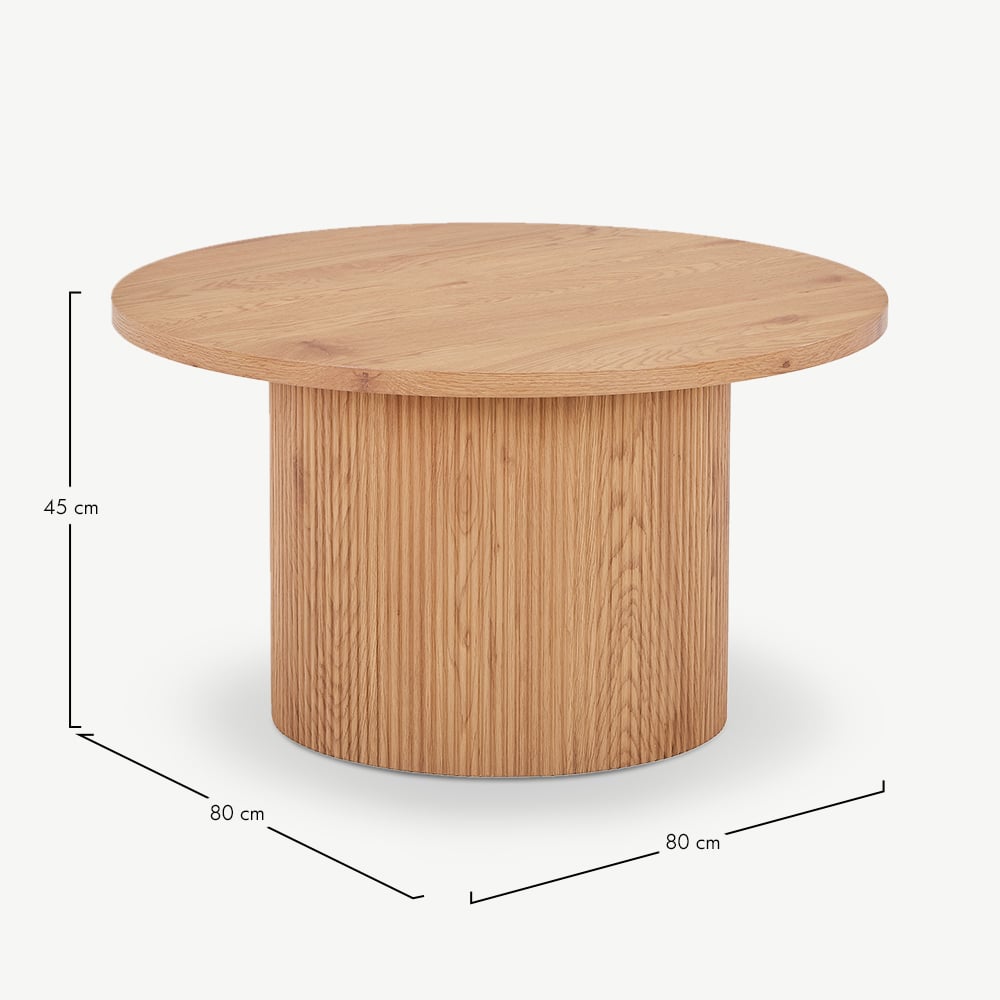 Duarte Runder Couchtisch aus Naturholz mit Lamellenbein