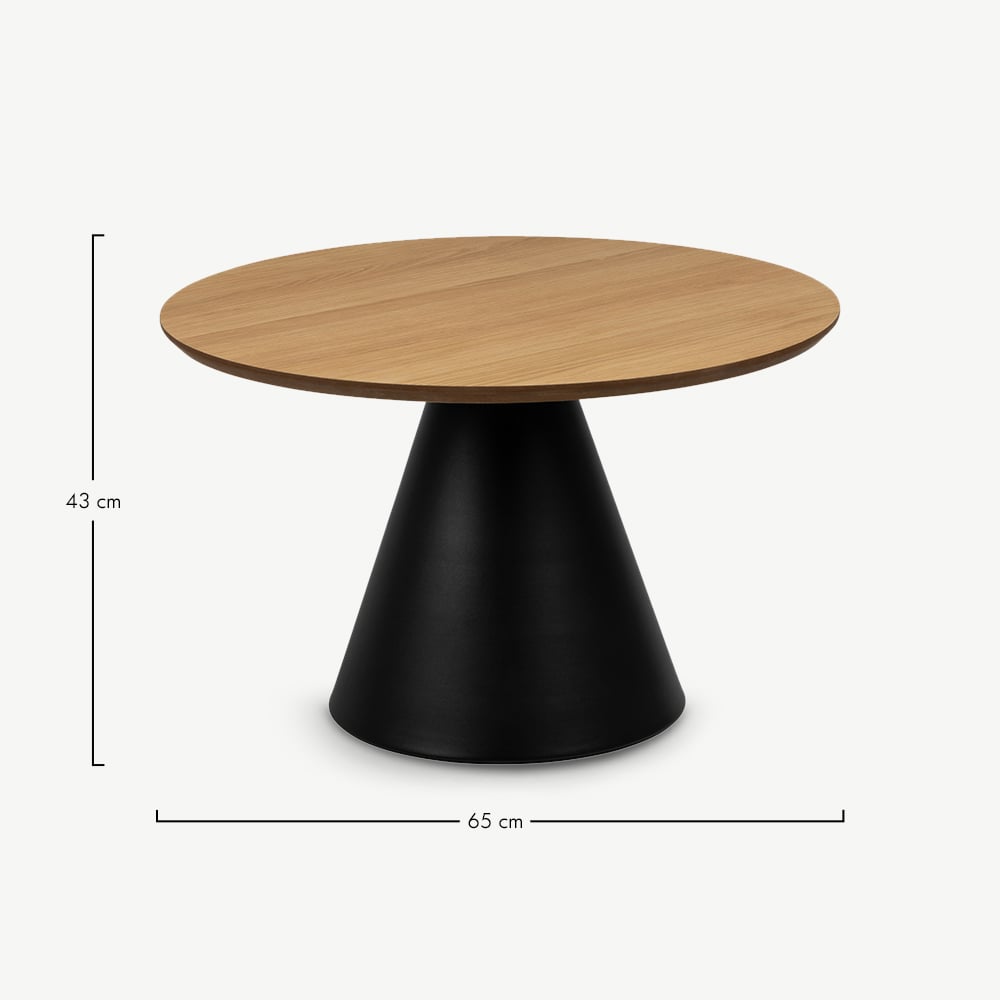 Ella Runder Couchtisch mit Eichenfurnier und schwarzem Metallfuß – Ø65 x 43 cm