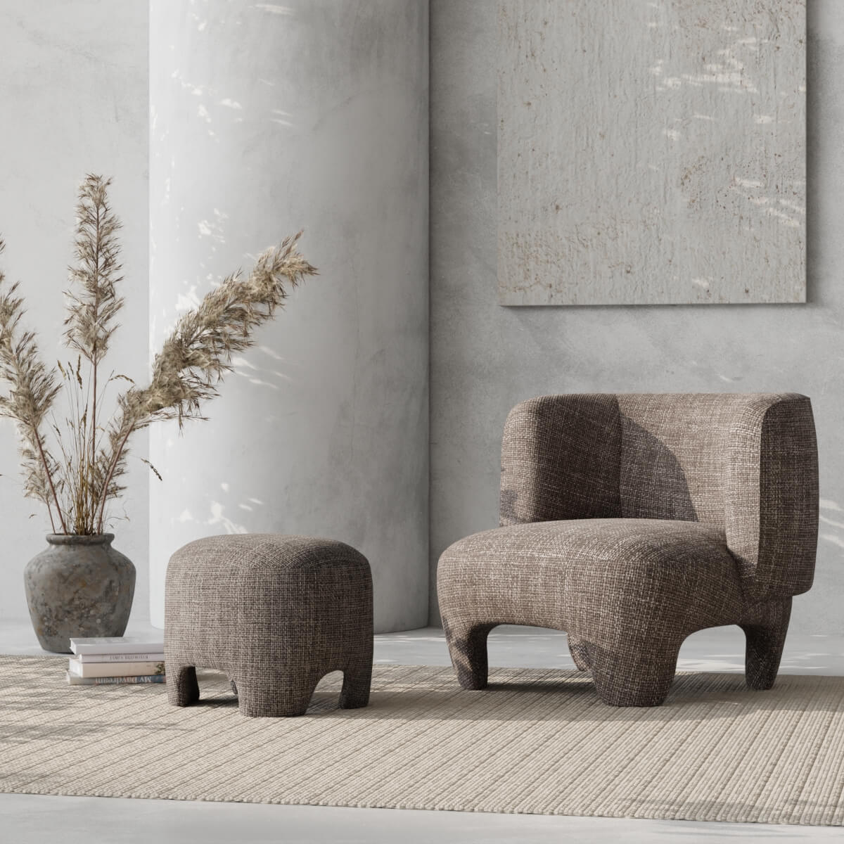 Mit seiner skulpturalen Form und neutralen Farbgebung schafft der Elna Lounge Chair ein anspruchsvolles, zeitgemäßes Ambiente. Der weiche graue Stoff verleiht jedem Raum Wärme, während die abgerundete Silhouette einen modernen Touch setzt. Ob im Alltag oder zu besonderen Anlässen – dieser Sessel bereichert Ihr Zuhause mit zeitlosem Stil und hohem Komfort.