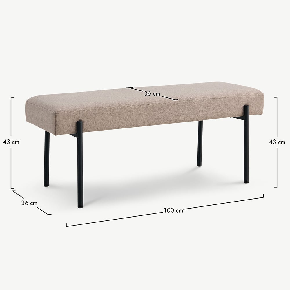 Die taupefarbene Stoffbank besticht nicht nur durch ihre ansprechende Ästhetik, sondern wird noch dazu von stabilen schwarzen Beinen getragen, die ihr eine hohe Lebensdauer garantieren und den Strapazen des Alltags mühelos standhalten. Zusammen mit der weichen, taupefarbenen Polsterung, die im Kontrast zu den robusten Beinen steht, wird die Florian Sitzbank zu einem Sinnbild für Stabilität und Raffinesse.