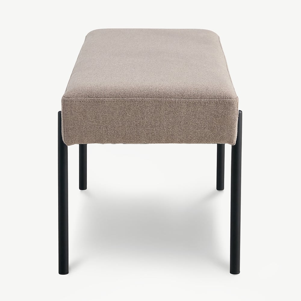Die Florian Sitzbank aus taupefarbenem Stoff: Schlichte Eleganz in kompakter Form.