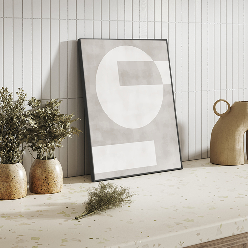 Diese moderne Wanddeko mit Holzrahmen eignet sich ideal, um Ihrem Wohn-, Schlaf- oder Arbeitszimmer eine elegante und zeitgemäße Atmosphäre zu verleihen. Das minimalistische Design des schwarzen Rahmens stellt sicher, dass der geometrische Wandkunstdruck im Vordergrund steht, während der Holzrahmen dem Bild eine zusätzliche Note von Raffinesse verleiht.
