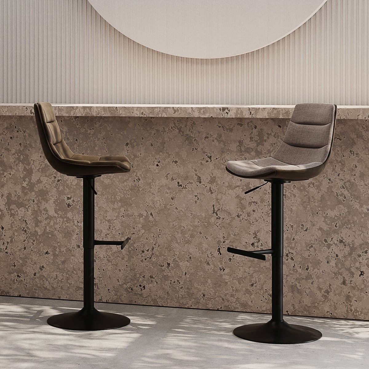 Mit seinem eleganten und unglaublich bequemen Stoff in Hellgrau ist dieser Hocker die ideale Wahl für alle, die gerne viel Zeit im Sitzen verbringen. Ausgestattet mit einem Trompetenfuß aus grob pulverbeschichtetem Metall in edlem Mattschwarz, verleiht der Barhocker jedem Raum eine moderne Note. Über die Gasdruckfeder im Handumdrehen auf die gewünschte Höhe einstellbar, wird er zum perfekten Begleiter für Bar und Küchentresen. Diese Barhocker überzeugen nicht nur durch ihr exquisites Design, sondern sind dank FSC™-Zertifizierung auch besonders umweltverträglich.
