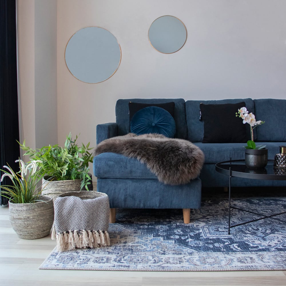 - Elegante Blau-Beige-Farbpalette, die verschiedene Einrichtungsstile ergänzt.