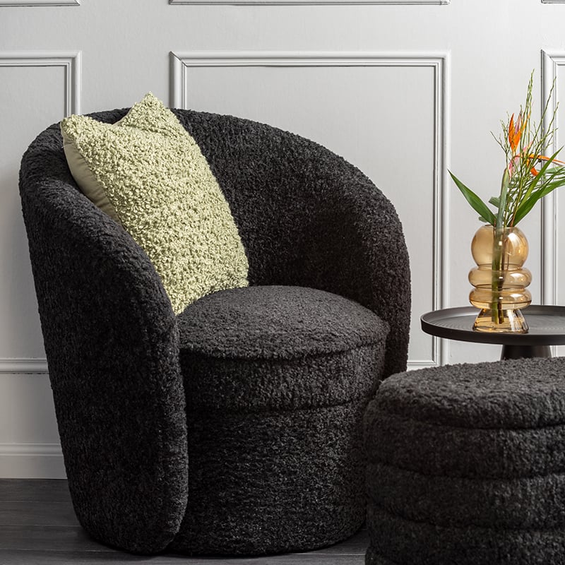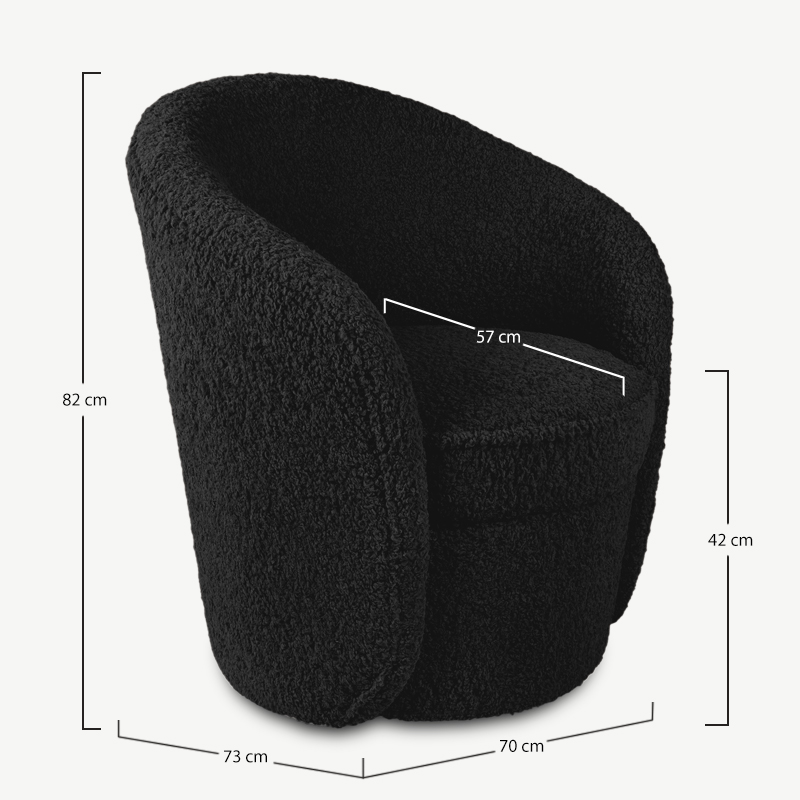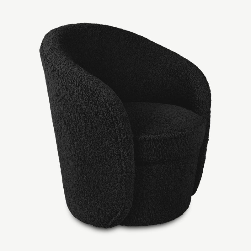 Tauchen Sie ein in die warme Umarmung des Juliet Sessels aus Bouclé und genießen Sie herrliche Momente der Entspannung.