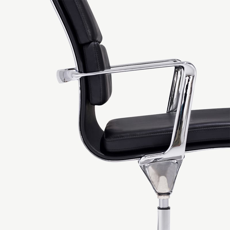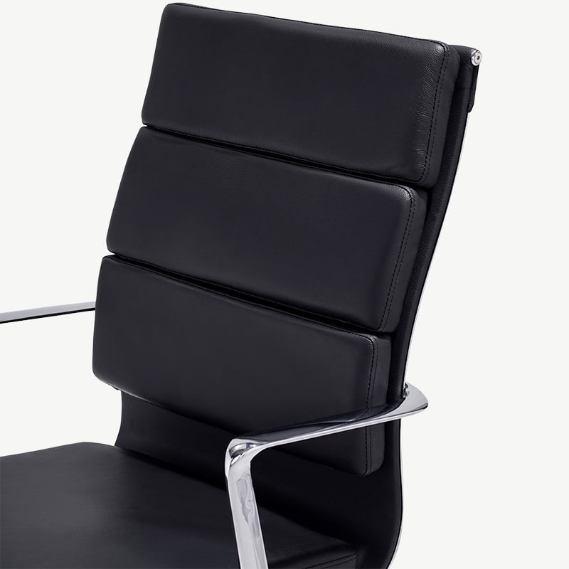 Levi Softpad Konferenzstuhl in Schwarzem Leder mit Hochlehnen-Design und festen Beinen