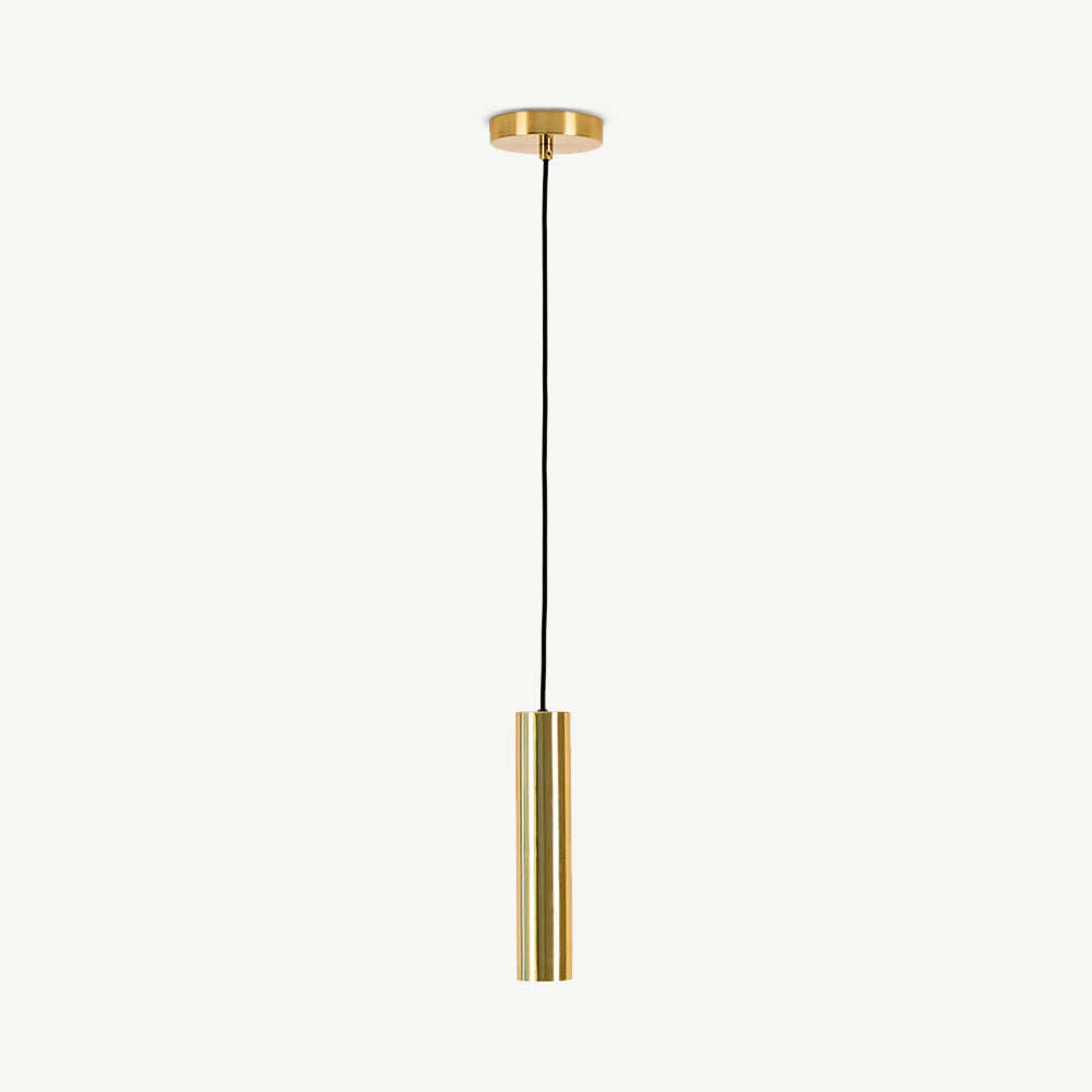 Gefertigt aus robustem Messing besticht die Lina Pendelleuchte durch ihre röhrenförmige Gestalt und eine polierte Oberfläche. Ihr minimalistisches Design fügt sich nahtlos in moderne, industrielle und zeitgenössische Innenräume ein. Kombinieren Sie sie mit metallischen Akzenten, dunklen Hölzern oder Marmorelementen, um den Raum zu bereichern.
