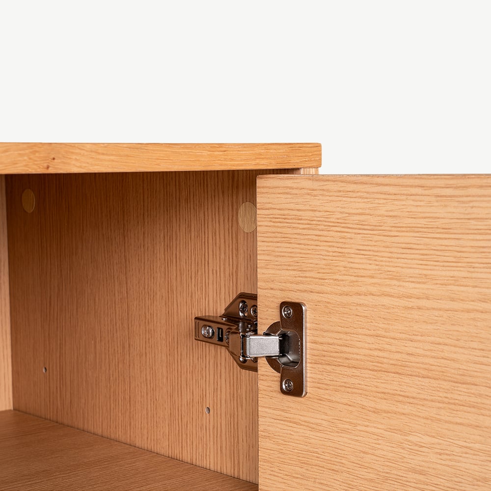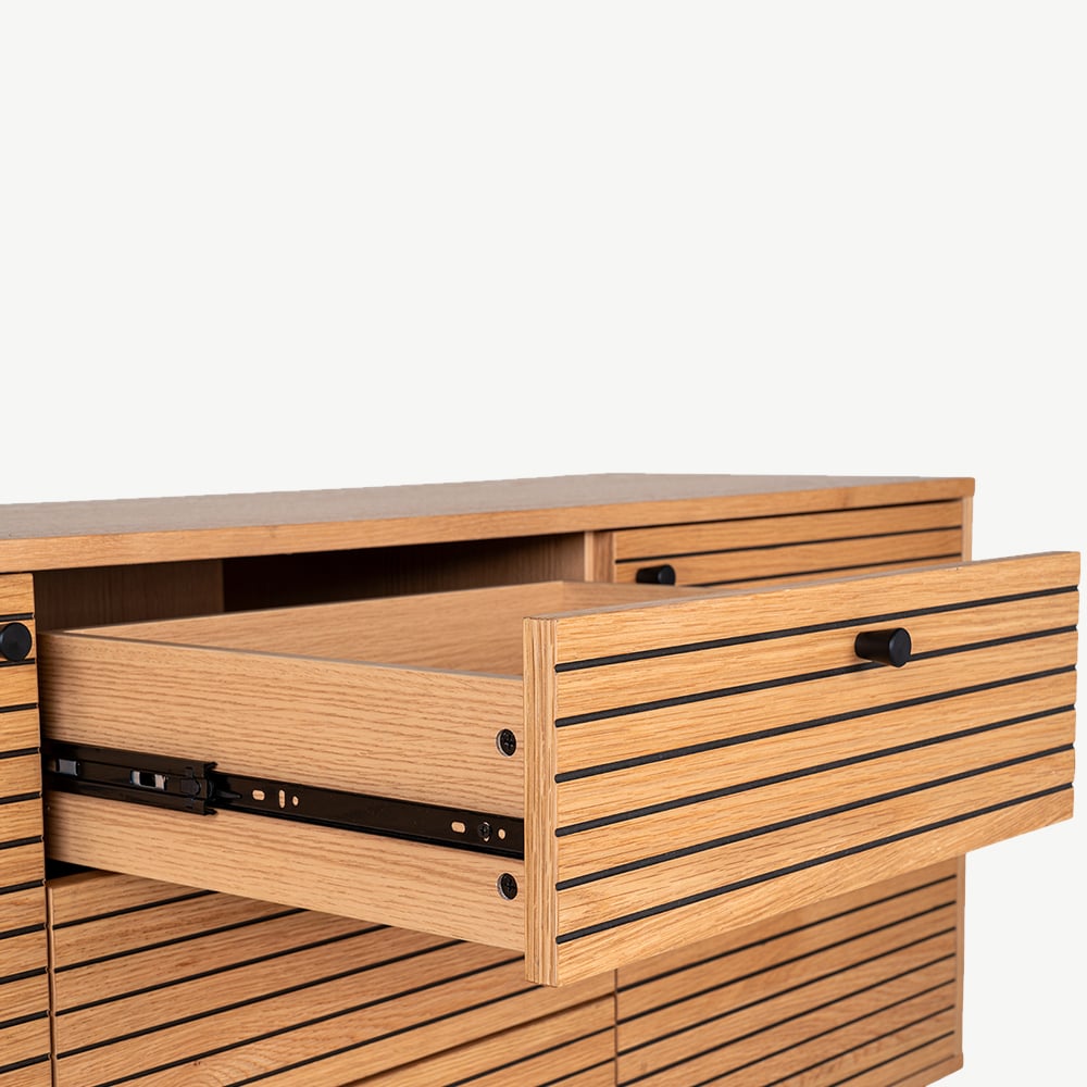 - Natürliches Eichenfurnier mit elegantem Lamellendesign.