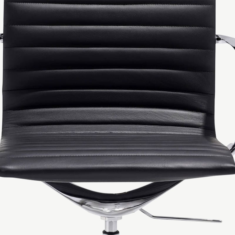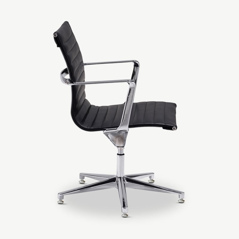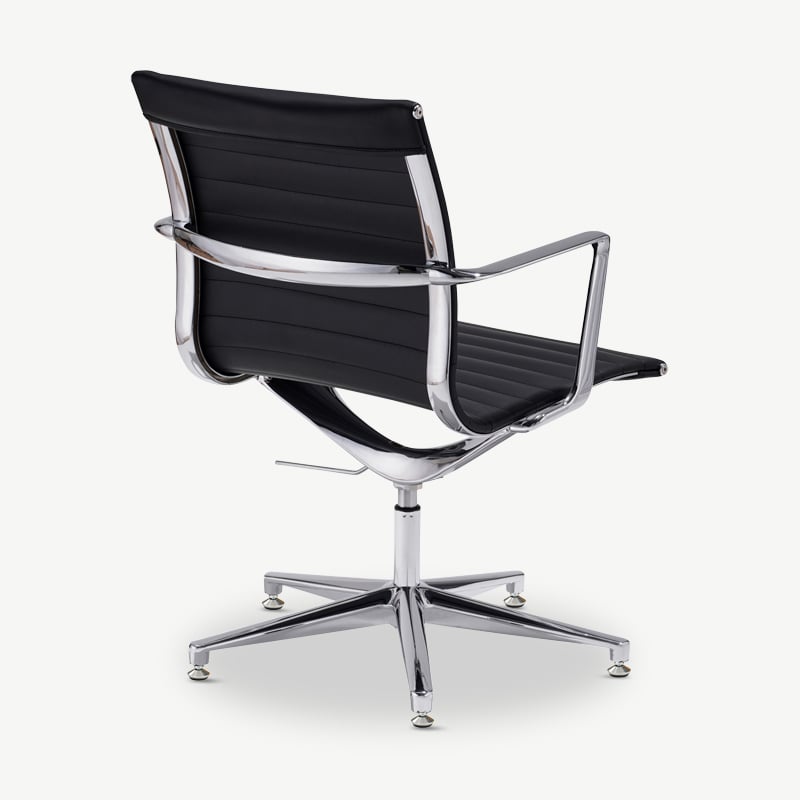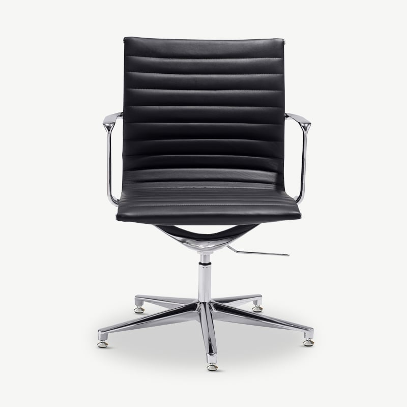 Mateo Schwarzer Leder-Konferenzstuhl mit gerippter Polsterung, niedriger Rückenlehne und festen Beinen