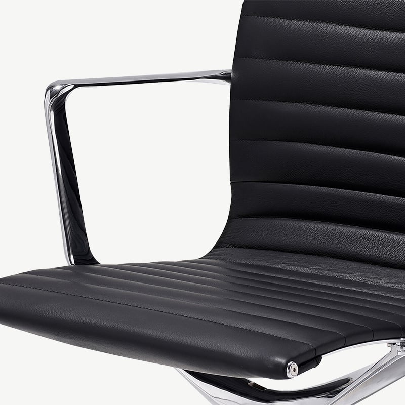 Mateo Konferenzstuhl, schwarzes Leder, niedrige Rückenlehne
