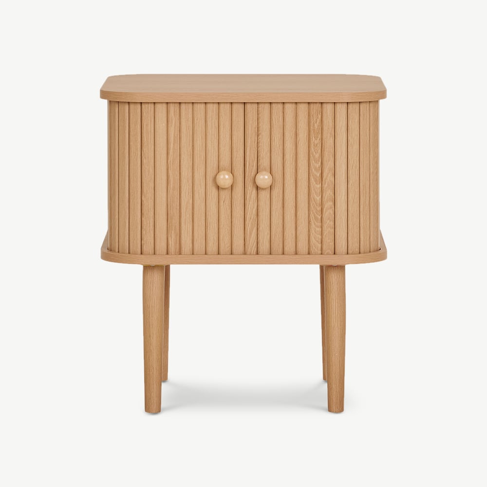 Konzipiert, um die Organisation zu verbessern, verfügt dieser Tisch über zwei versteckte Aufbewahrungsbereiche hinter seinen eleganten Türen, die ausreichend Platz für Bücher, persönliche Gegenstände oder Nachttischutensilien bieten. Ob neben dem Bett, Sofa oder Sessel – er hilft, den Raum aufgeräumt zu halten und sorgt gleichzeitig für einen mühelos stilvollen Look.