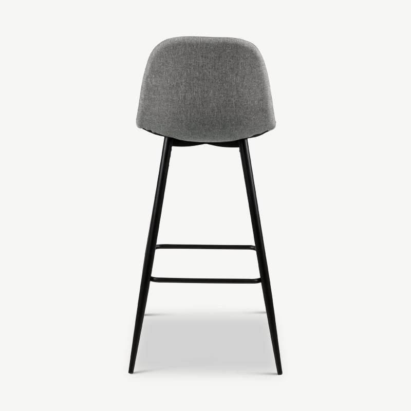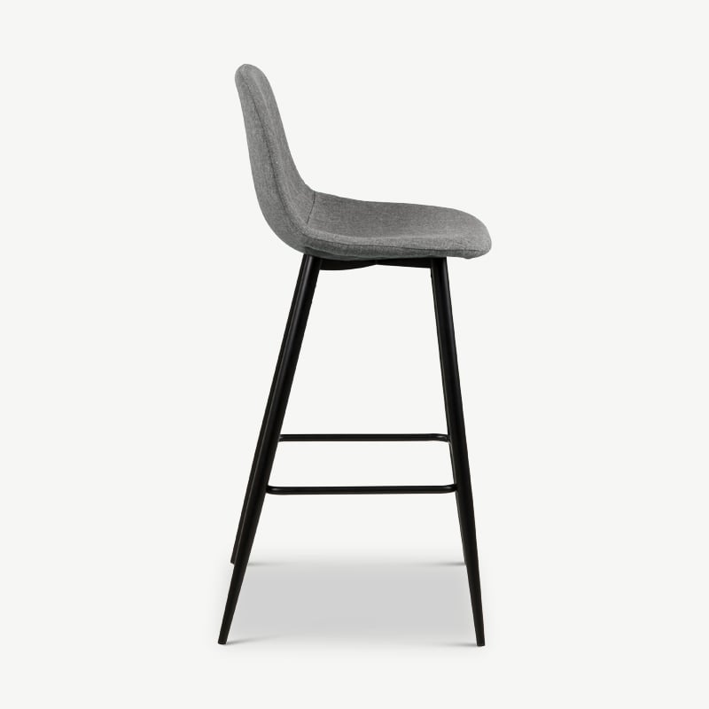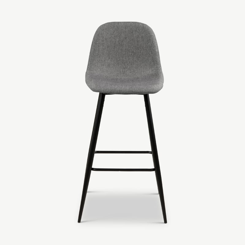 Der Noel Barhocker aus hellgrauem Stoff und schwarzem Stahl wird Ihrem Essbereich oder Bartisch einen Hauch von Eleganz verleihen.