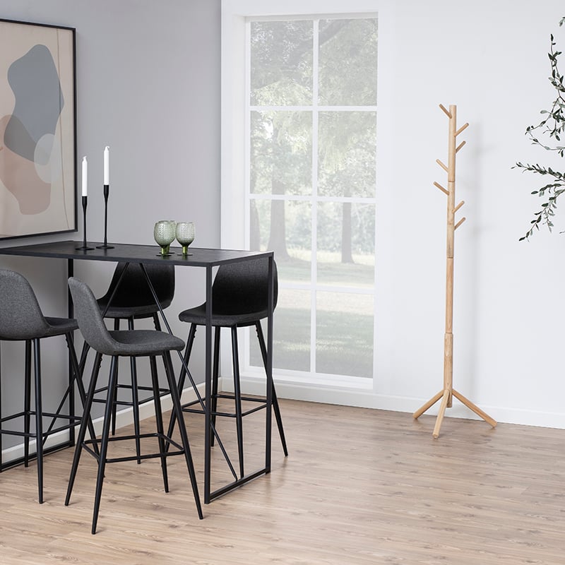 Mit seinem modernen Design und der weichen hellgrauen Polsterung ist der Noel Barhocker ideal für den Küchenbereich geeignet. Er fügt sich nahtlos in verschiedene Einrichtungsstile ein und bietet eine bequeme Sitzmöglichkeit für alltägliche Mahlzeiten oder gesellige Abende.