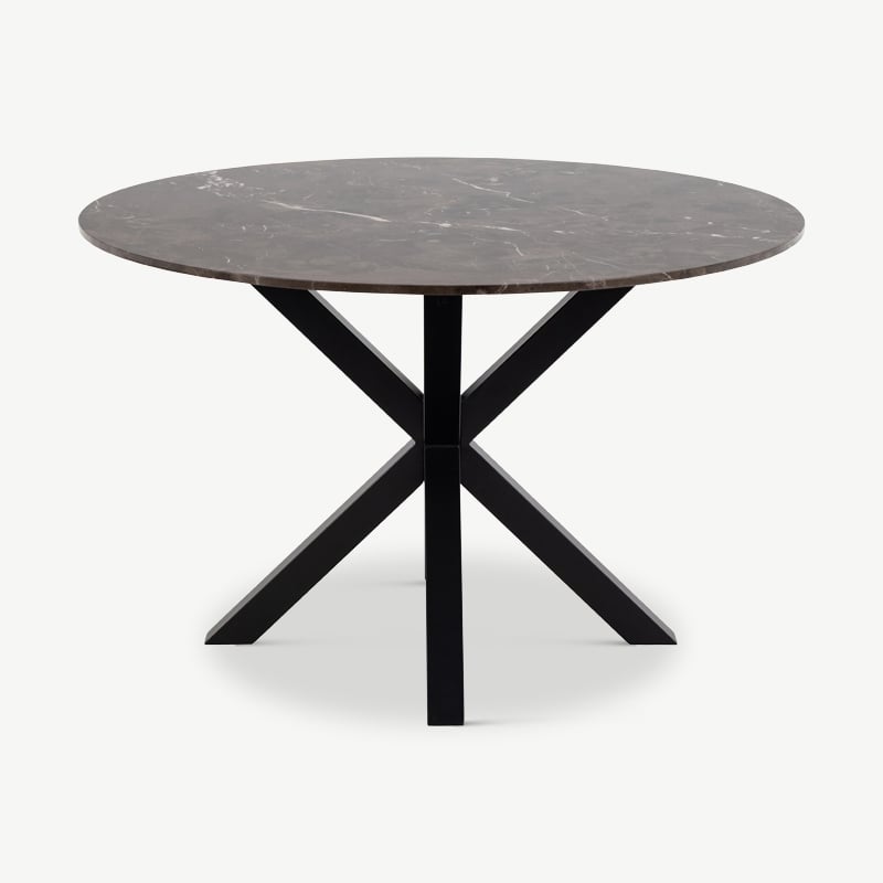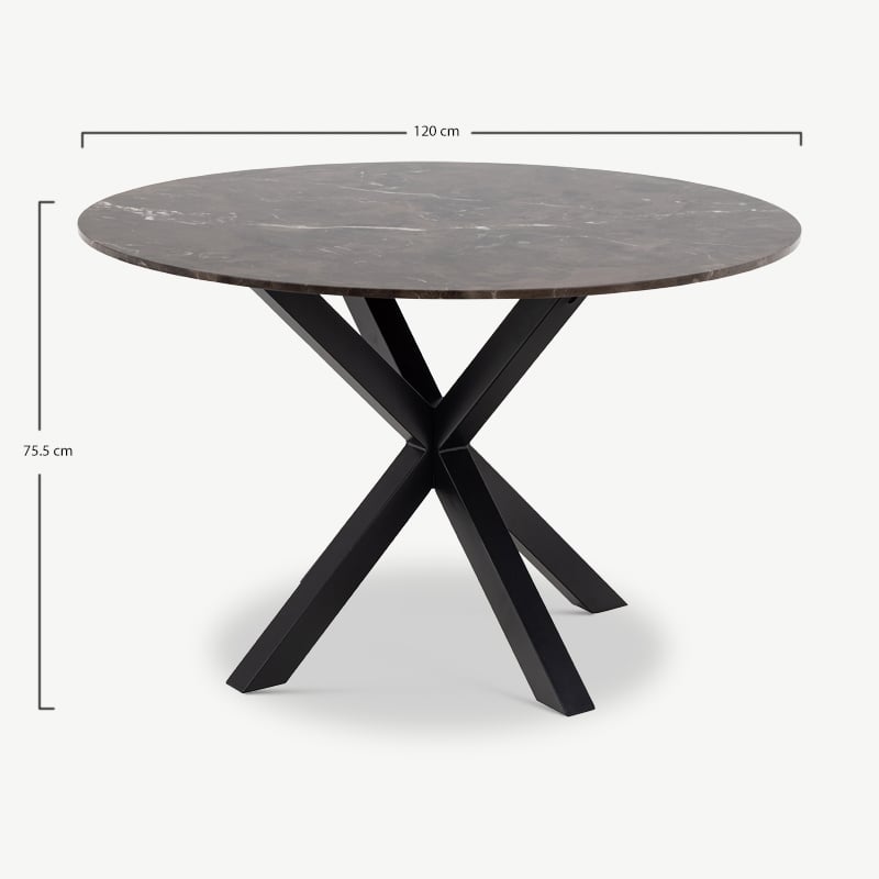 Talon Runder Esstisch aus Braunem Marmor mit Schwarzen Metallbeinen – Für bis zu 6 Personen – Ø120 cm
