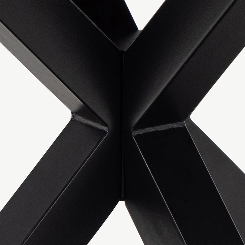 - Gekreuzte Metallbeine mit grober schwarzer Pulverbeschichtung