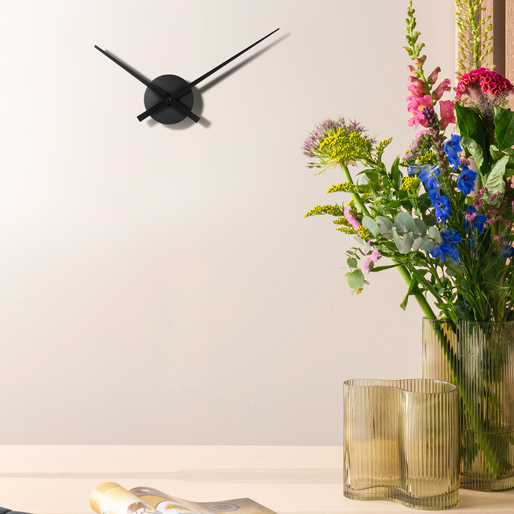 Wir präsentieren die kleine Serena Stripped Wanduhr aus schwarzem Stahl, ein Paradebeispiel für modernen Minimalismus, präsentiert von Furnicher. Mit ihrem raffinierten Design und den länglichen Zeigern setzt diese Wanduhr ein dekoratives und zugleich dezentes Statement an jeder Wand.