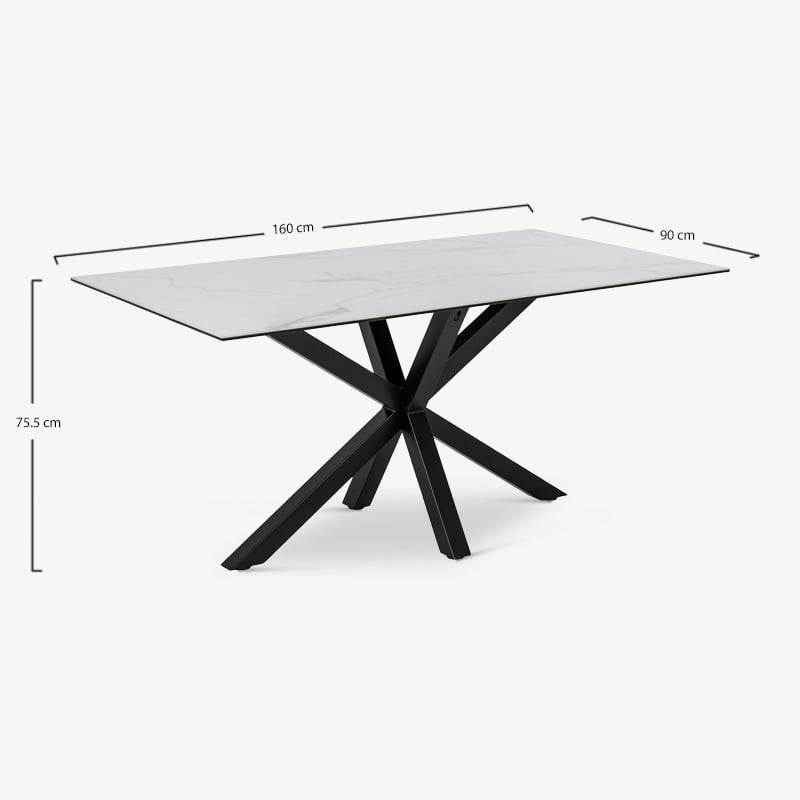Talon Esstisch mit Weißer Keramikplatte & Gekreuztem Metallgestell – Für bis zu 6 Personen – 160 cm