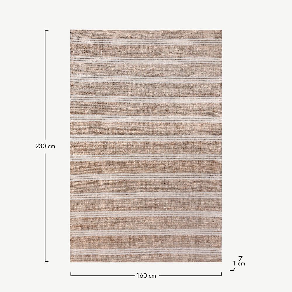 Durch die geschickten Hände erfahrener Kunsthandwerker entstanden, offenbart der Juteteppich Thalassa die Feinheiten meisterlicher Handarbeit. Webart um Webart und Knoten für Knoten fügen sich harmonisch zu einem Teppich zusammen, der sowohl strapazierfähig als auch ästhetisch ansprechend ist. Der Teppich Thalassa ist nicht einfach nur ein Teppich, sondern ein dauerhaftes und schönes Zeugnis handwerklicher Leidenschaft.Dimensions