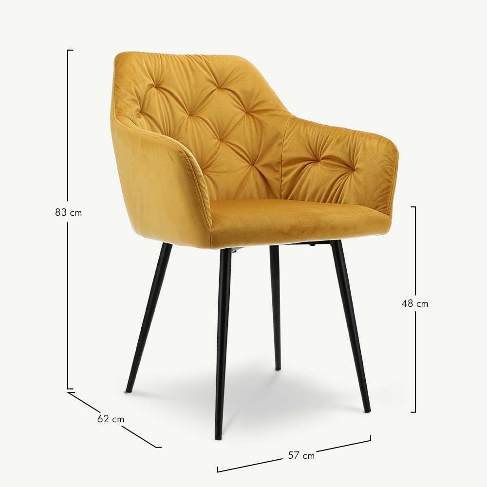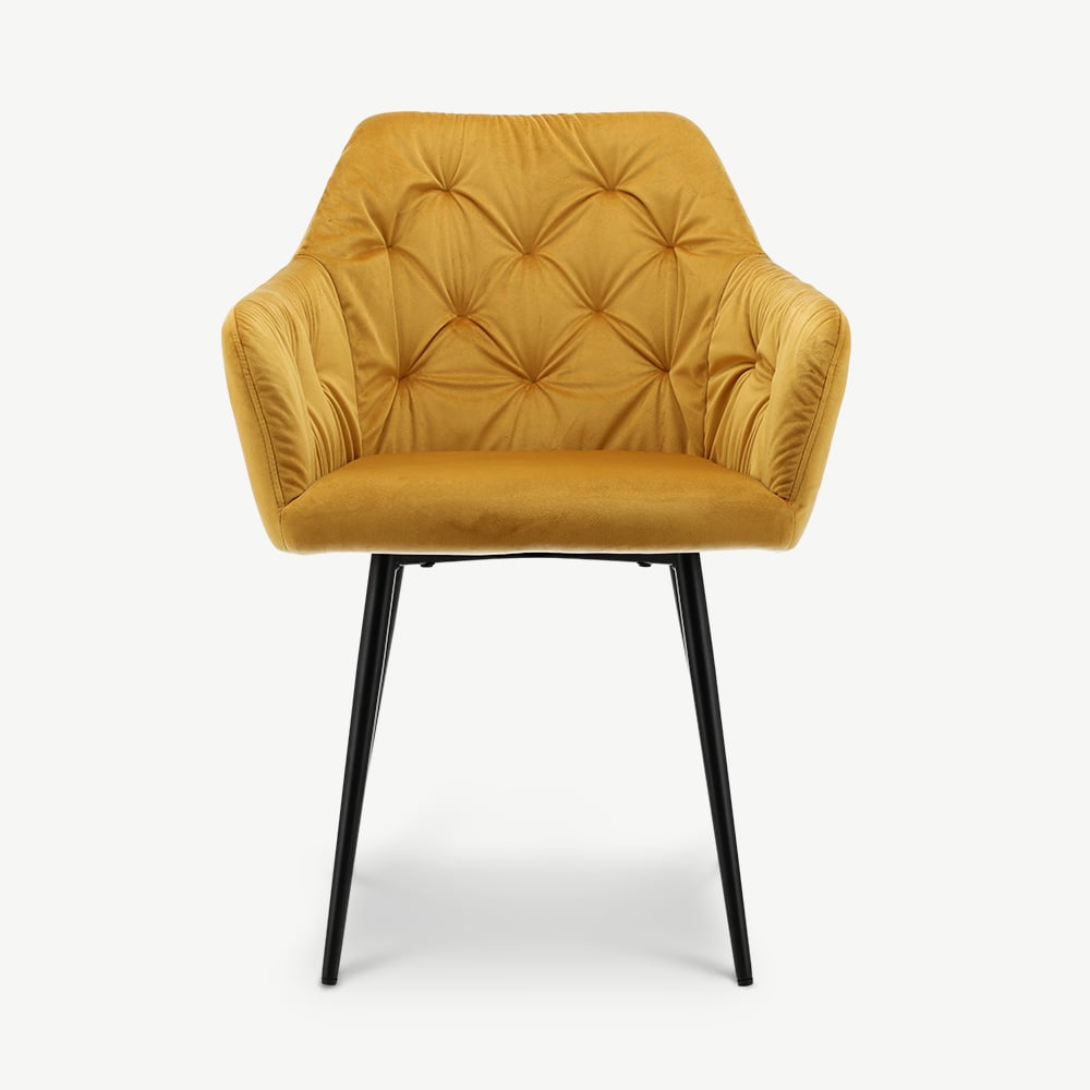 Vinny Gelber Samt-Quilt Esszimmer-Sessel mit Schwarzen Metallbeinen