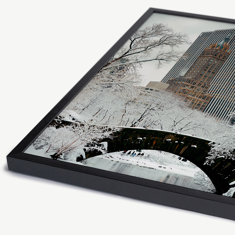 Die Wanddeko Central Park wird in einem schwarzen Buchenholzrahmen geliefert, der für seine Langlebigkeit und natürliche Schönheit bekannt ist. Der Holzrahmen präsentiert das moderne Wandbild auf eine Weise, die ihm Tiefe und Dimension verleiht und es zu einem echten Blickfang in Ihrem Interieur macht.