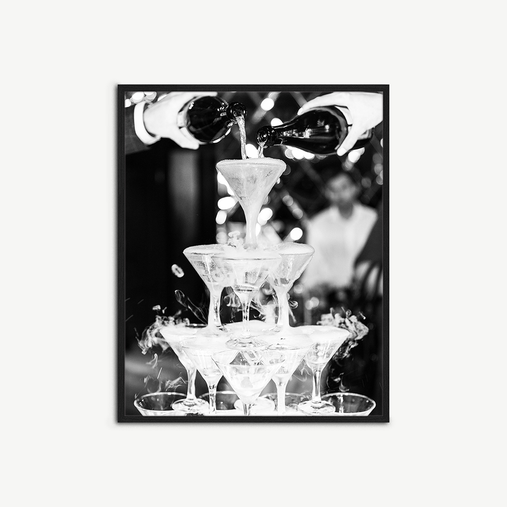 Das Wandbild Champagner-Pyramide wird in einem schwarzen Rahmen geliefert, der für seine Langlebigkeit und natürliche Schönheit bekannt ist. Die Holzrahmen präsentieren das Schlafzimmer-Wandbild auf eine Weise, die ihm Tiefe und Dimension verleiht und es zu einem echten Blickfang in Ihrem Interieur macht.