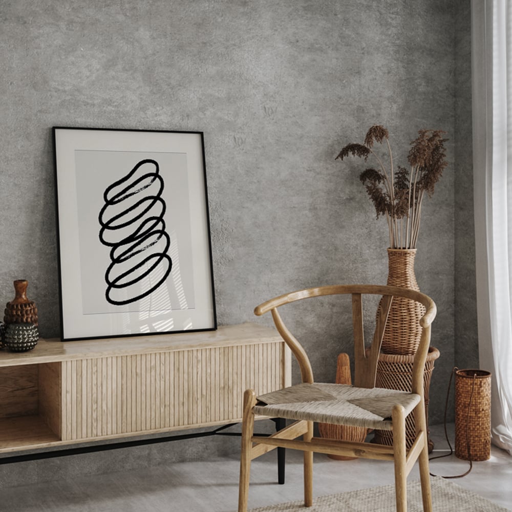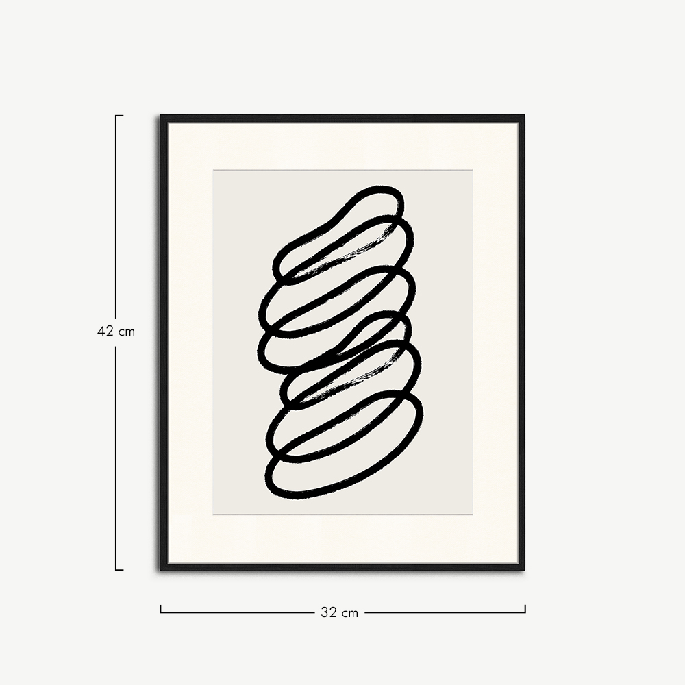 Diese moderne Wanddeko mit Holzrahmen eignet sich ideal, um Ihrem Wohn-, Schlaf- oder Arbeitszimmer eine elegante und zeitgemäße Atmosphäre zu verleihen. Das minimalistische Design des schwarzen Rahmens stellt sicher, dass die abstrakte Wandkunst im Vordergrund steht, während das Passepartout dem Wandbild eine zusätzliche Note von Raffinesse verleiht.