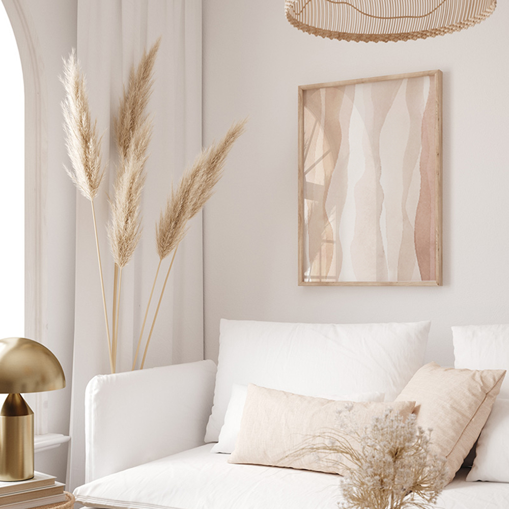 The Abstract Beige Waves Wall Art comes in a natural frame, known for its durability and natural beauty. The wooden frame displays the abstract wall art in a way that adds depth and dimension, making it a true focal point in your interior.