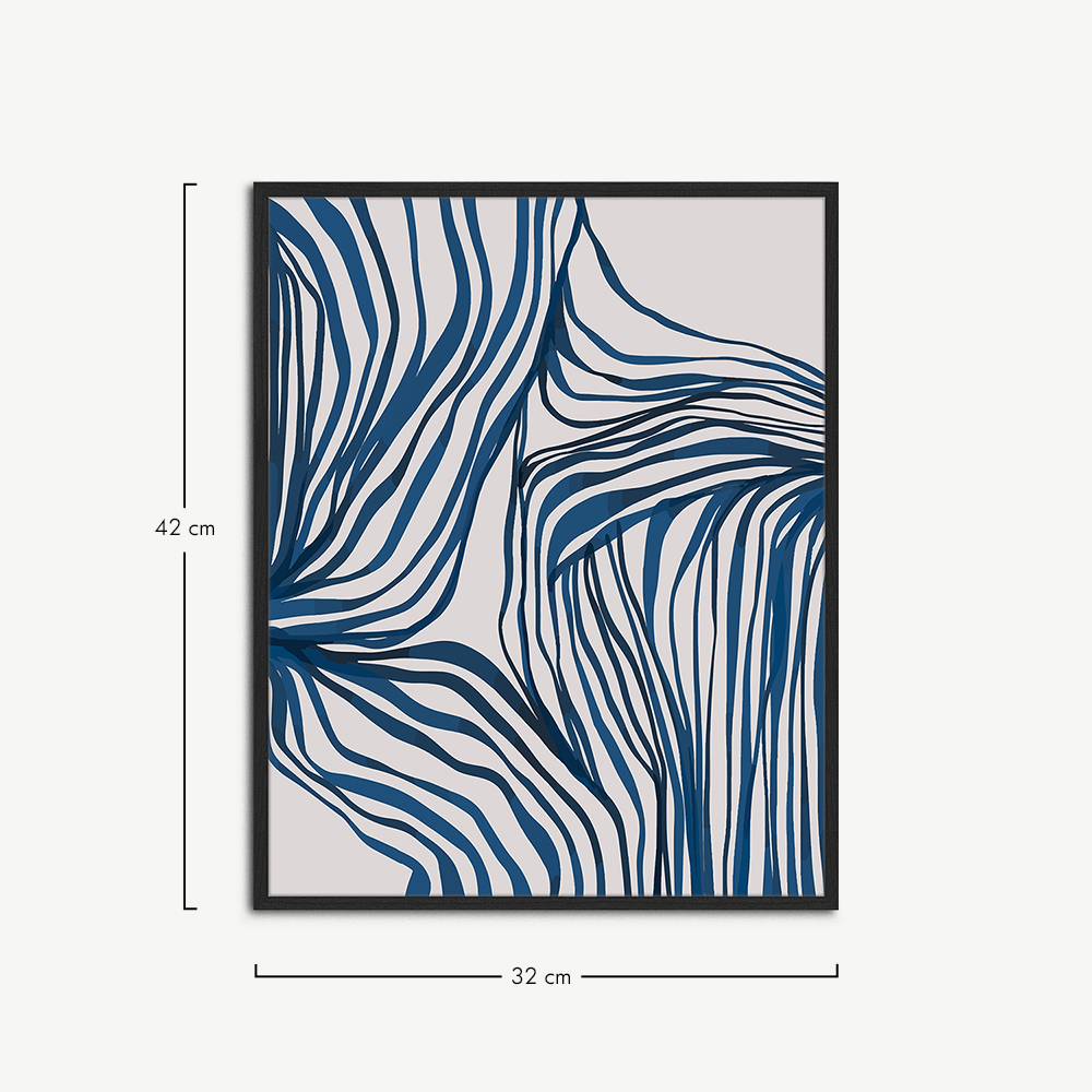 The Abstract Blue Wall Art is a stunning addition to any space. This abstract wall art comes to life in a stylish print in black beechwood thin frame, giving it a refined look.