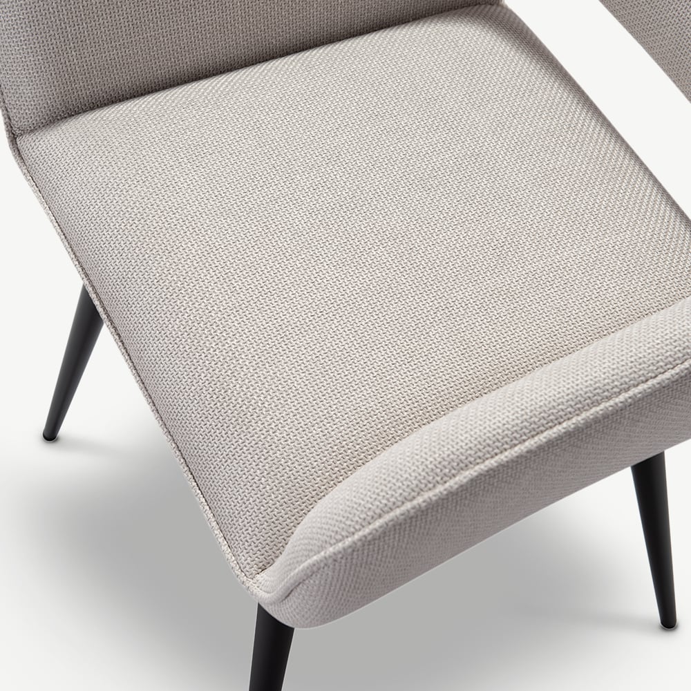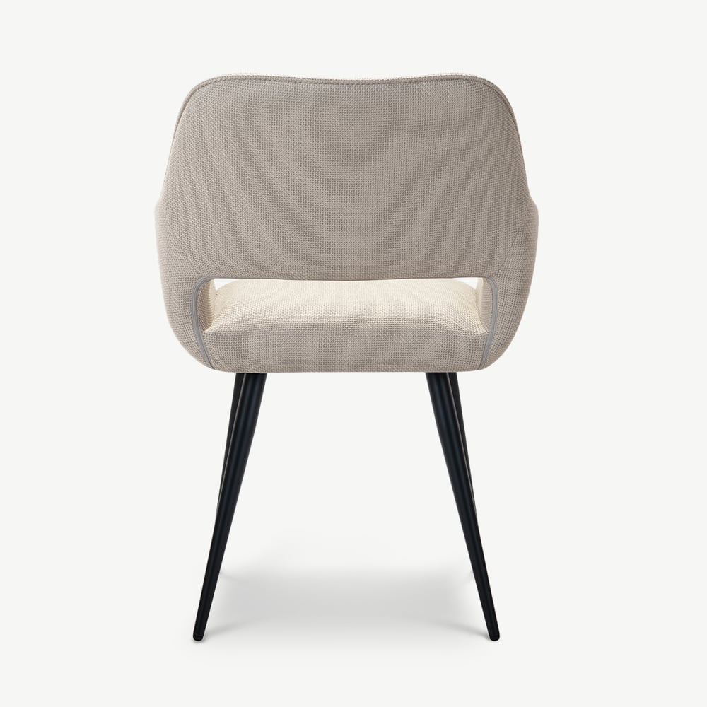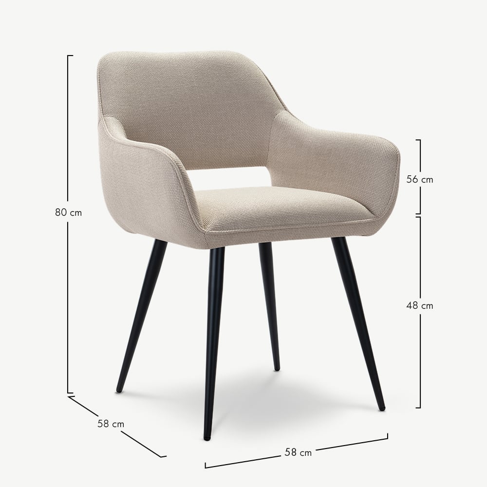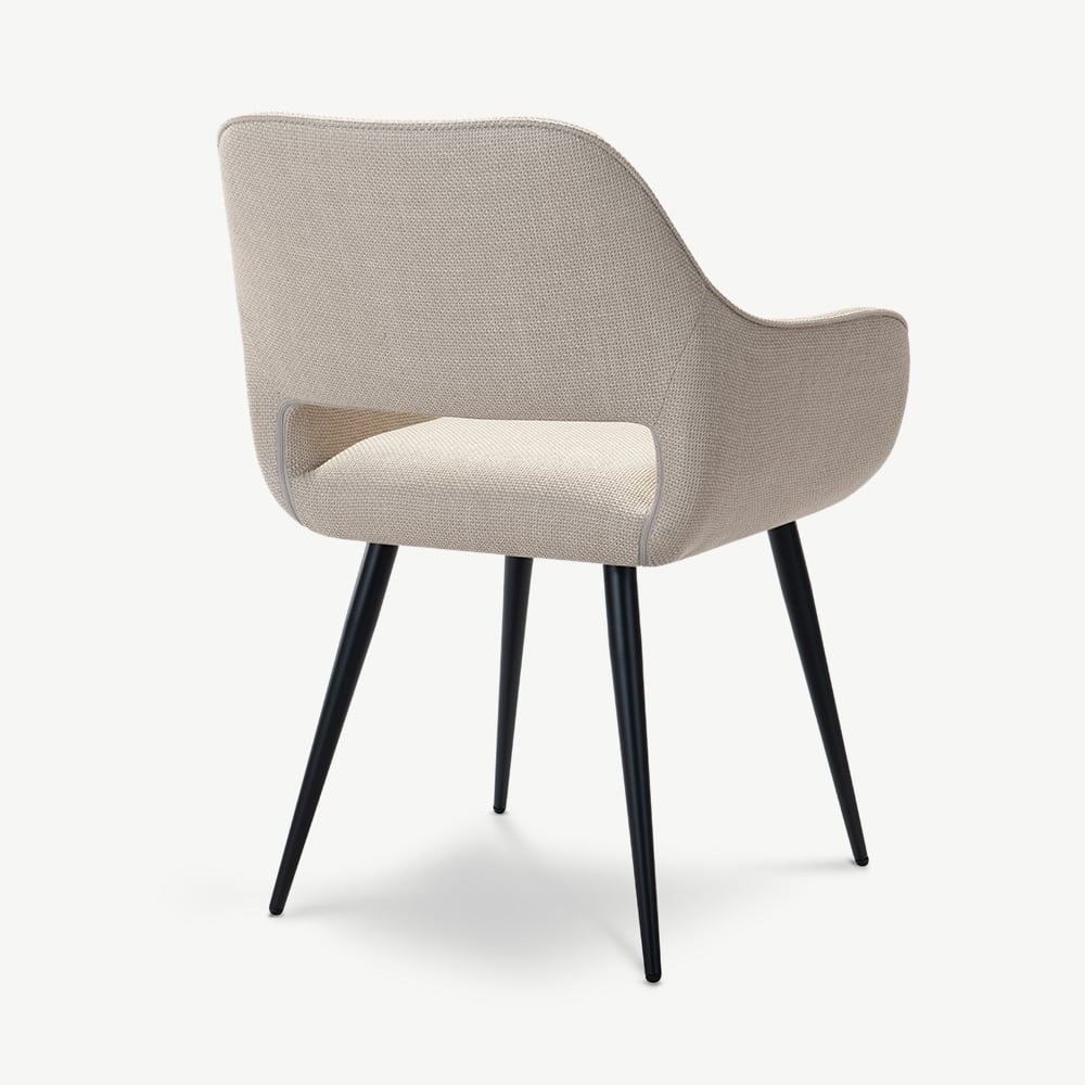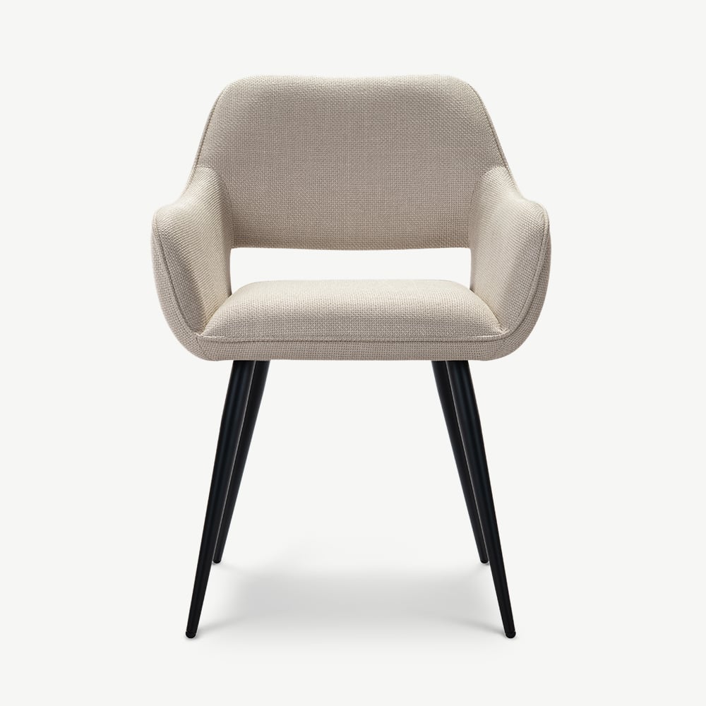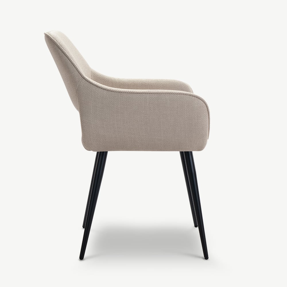 Adele Beige Fabric Dining Armchair with Black Coated Metal Legs