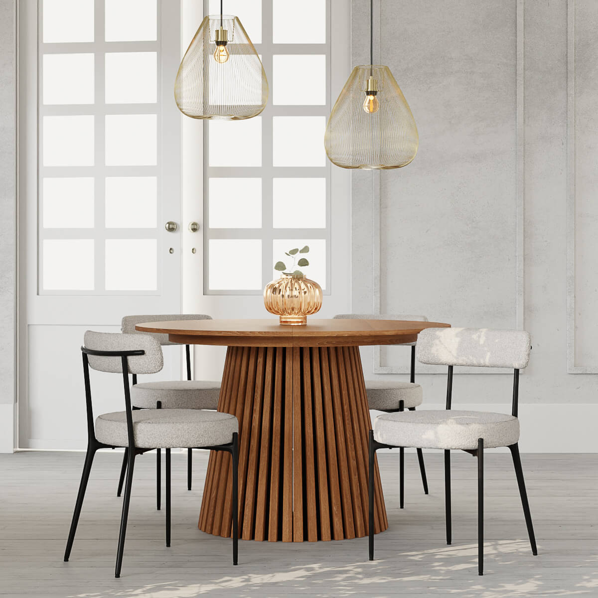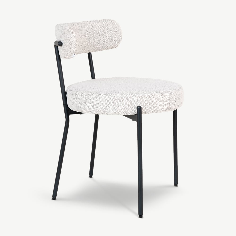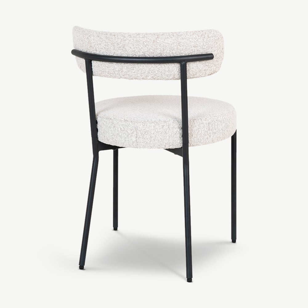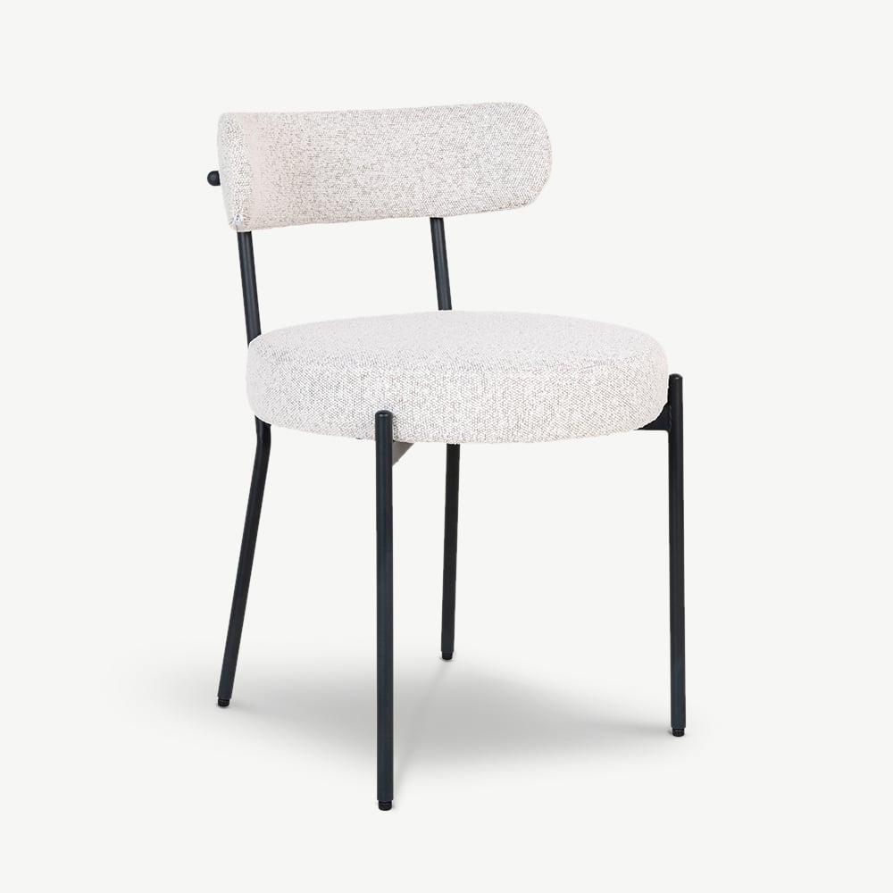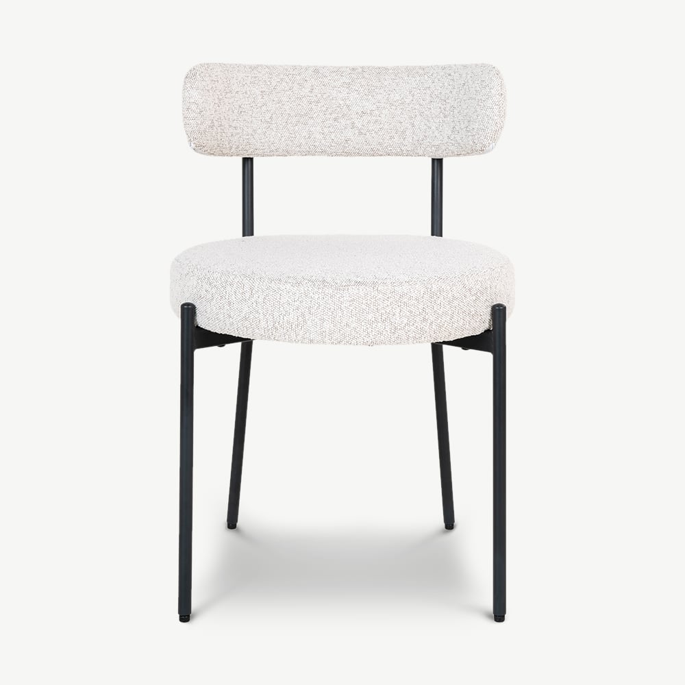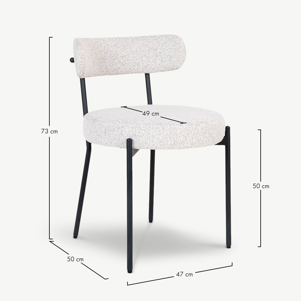 Crafted with quality materials, this dining chair is built to last. Its sturdy construction ensures durability, making it an ideal choice not just as a dining chair but also as a versatile kitchen chair. The plush bouclé upholstery provides a comfortable seating experience, inviting you to linger longer over your meals. The minimalist design of this chair makes it versatile enough to complement any dining table or kitchen setup. With its sleek silhouette and chic aesthetic, the Adina chair adds a touch of sophistication to your dining area, seamlessly integrating with both modern and Scandinavian decor themes.