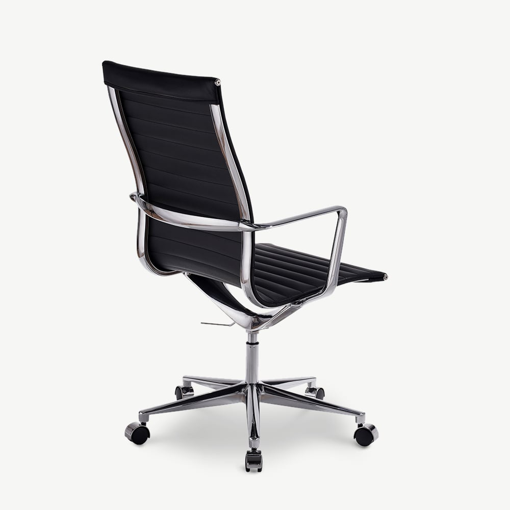Akira Black Leather Ribbed Office Chair with Highback Design