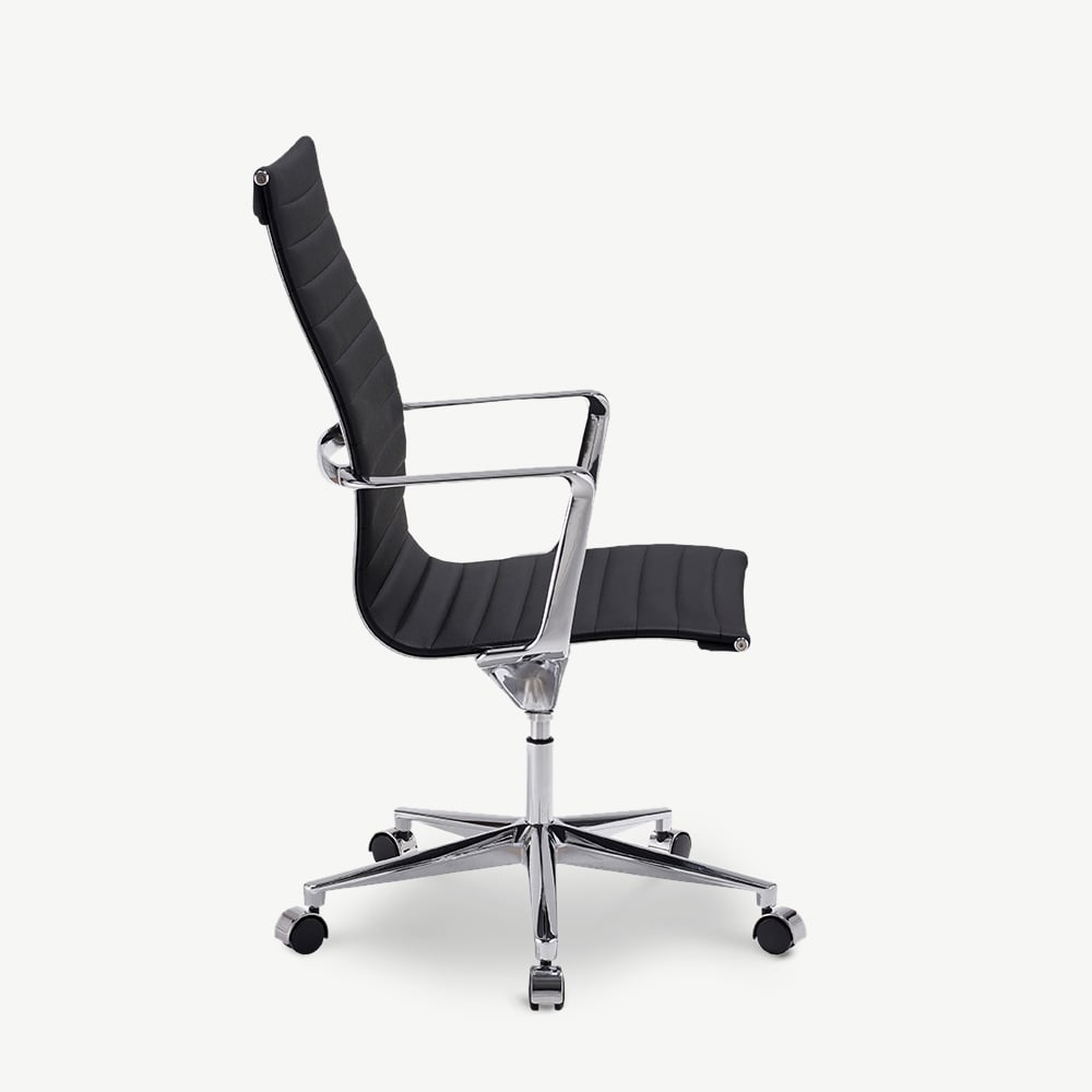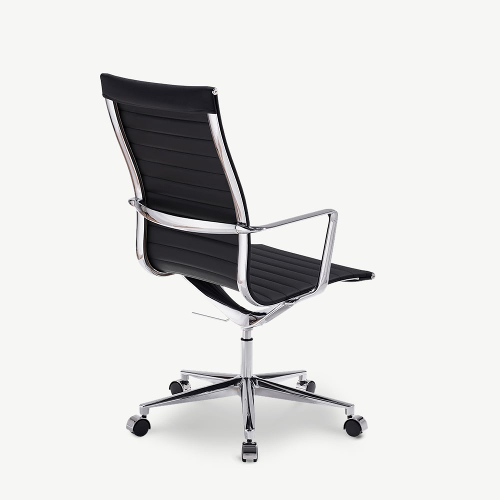 Akira Black Vegan Leather Ribbed Office Chair with Highback Design