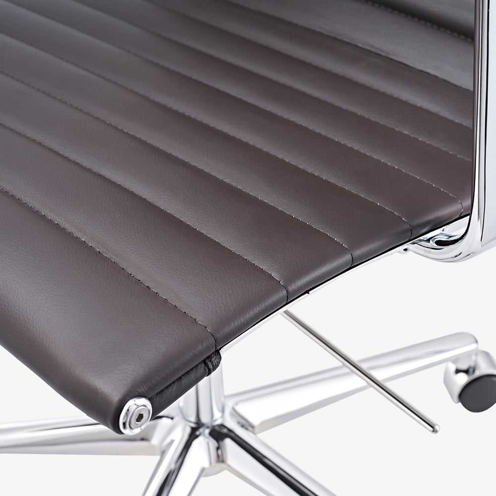 Akira Dark Brown Leather Ribbed Office Chair with Highback Design