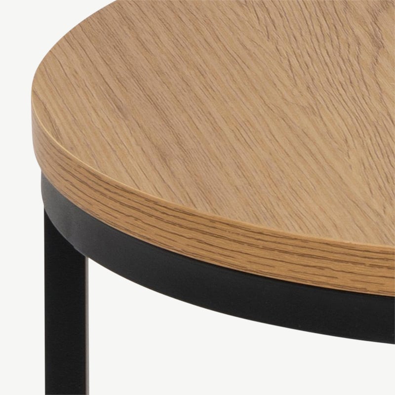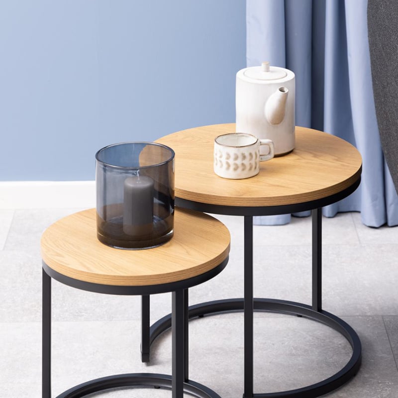 Crafted with a natural wood top, the Aria Nesting Side Tables bring warmth and organic texture to your home. The rich wood grain contrasts beautifully with the sturdy black metal frame, creating a balanced and sophisticated design. Perfectly suited for industrial, Scandinavian, or minimalist interiors, they pair effortlessly with fabric sofas, metal accents, and cosy rugs.