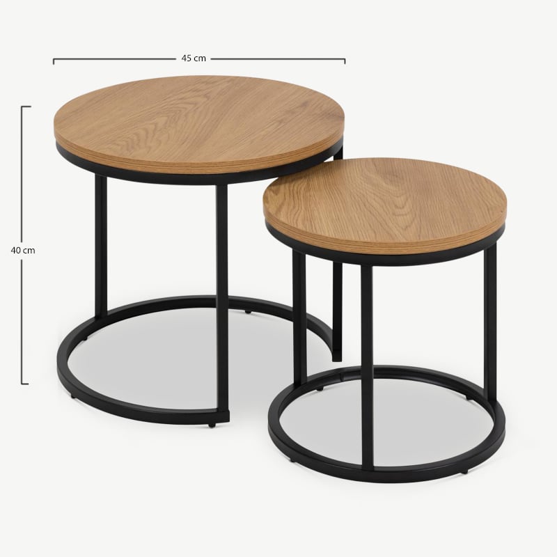 - Table 1: Ø45 x 40 cm. Table 2: Ø35 x 35 cm