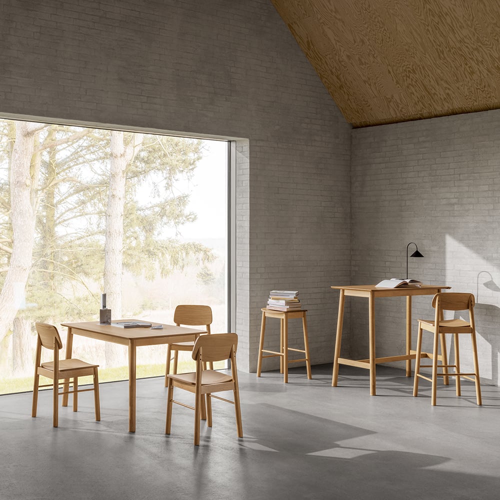 The Aston Bar Table combines compact proportions with natural warmth, making it a stylish and functional choice for kitchens, dining corners or modern open-plan spaces. Crafted with a lacquered oak veneer top and round oak-stained wooden legs, this FSC™-certified design seats up to 4 and offers a relaxed, elevated dining experience.