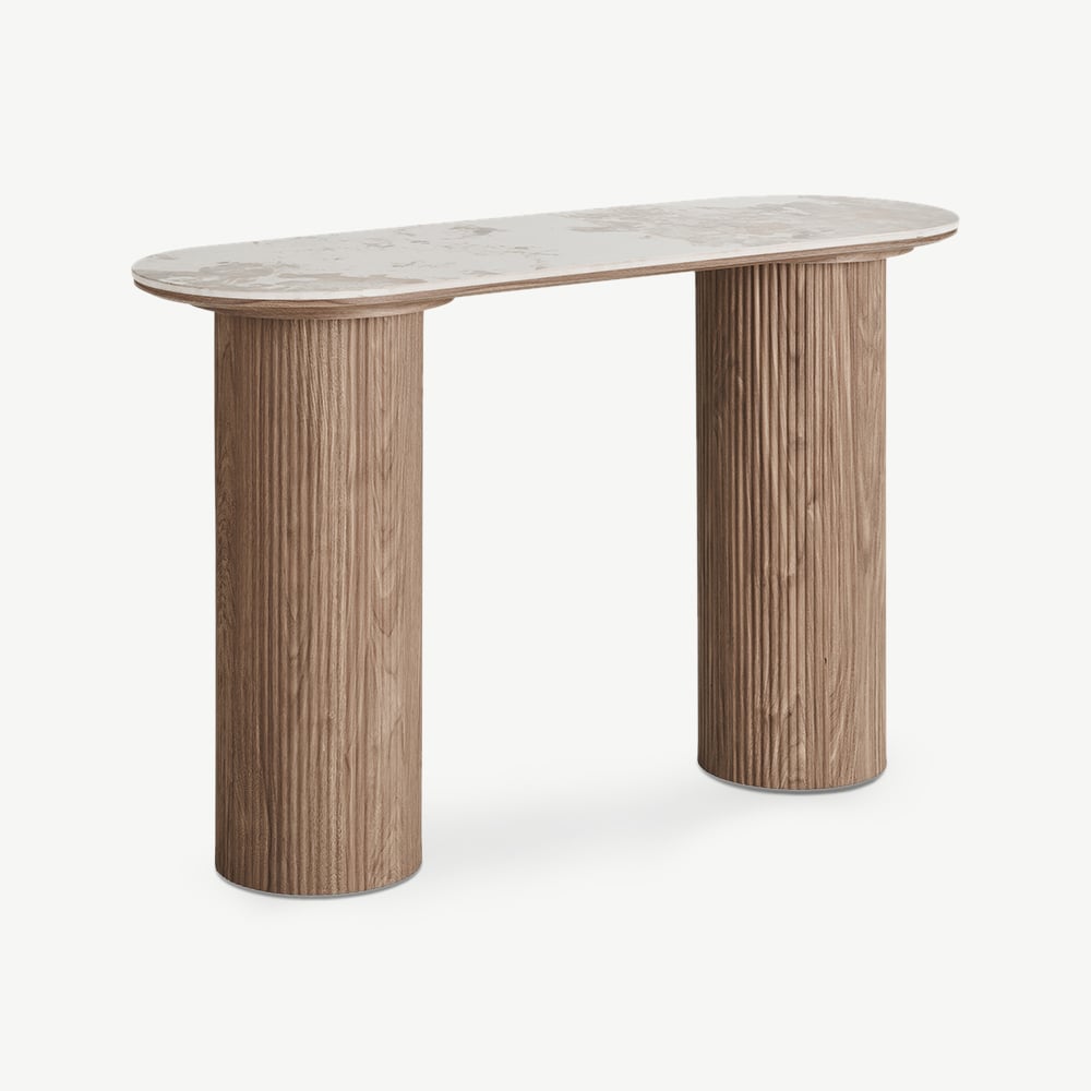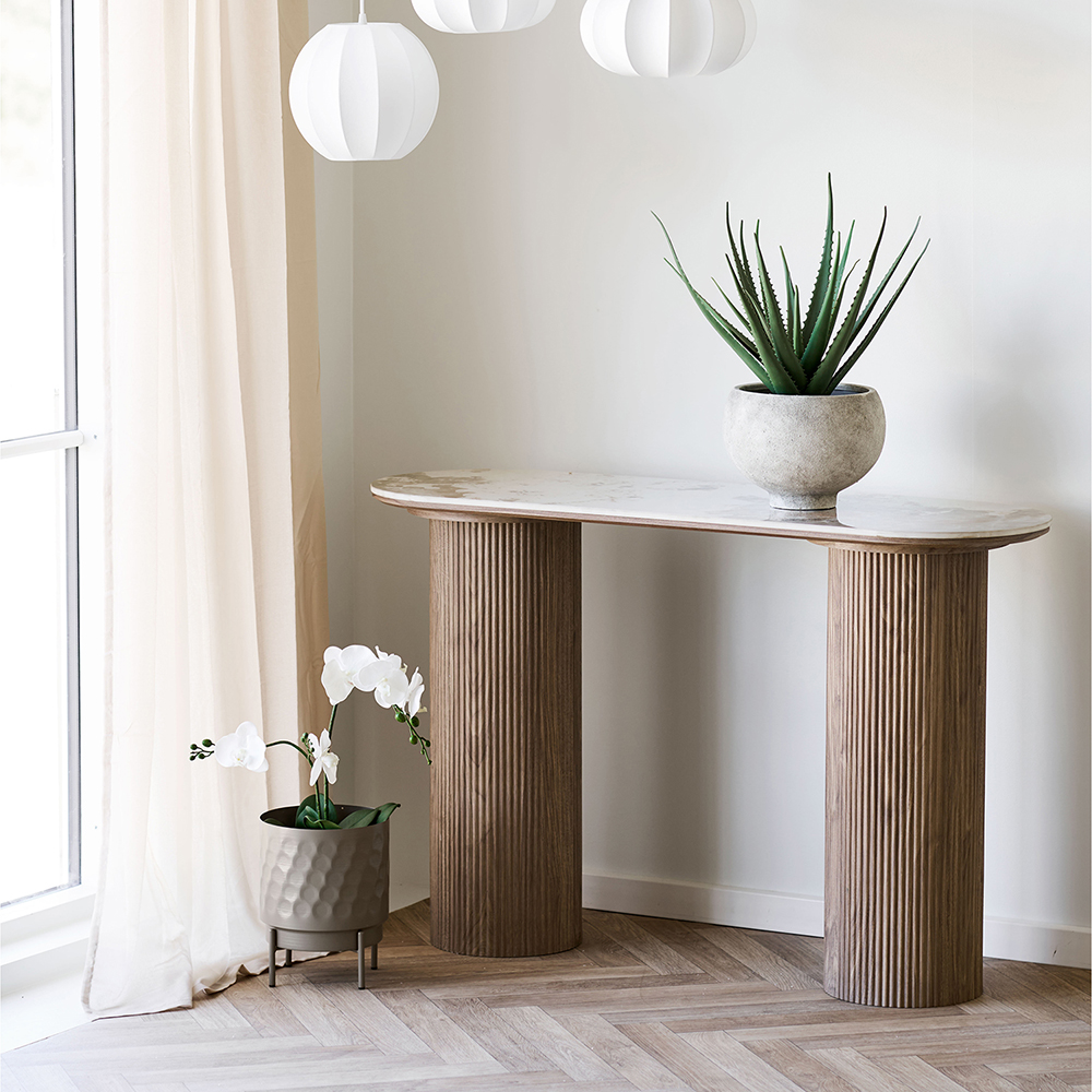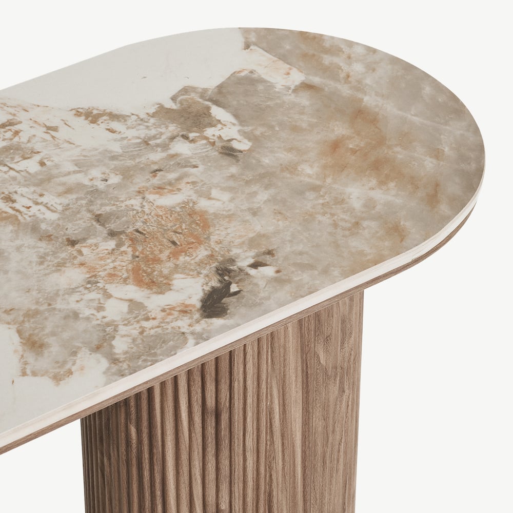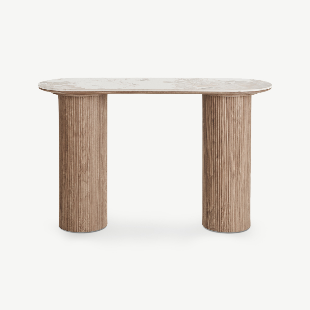 The Athena Console Table combines cool white ceramic with a rich dark brown base for a look that’s both bold and balanced. Its refined design adds sophistication to entryways or living areas, blending luxury materials with everyday practicality. Perfect for creating a stylish statement in modern homes or hospitality spaces.