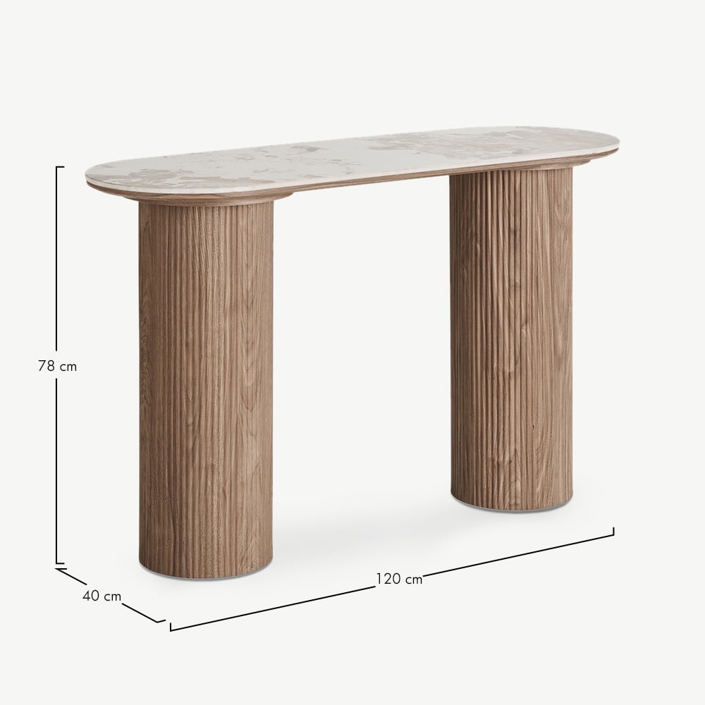 Ideal for hallways, lounges, and boutique apartments, the Athena console serves as a refined surface for décor or lighting. Its slender design ensures versatility in compact layouts, while the combination of ceramic and wood offers strength with a high-end finish.