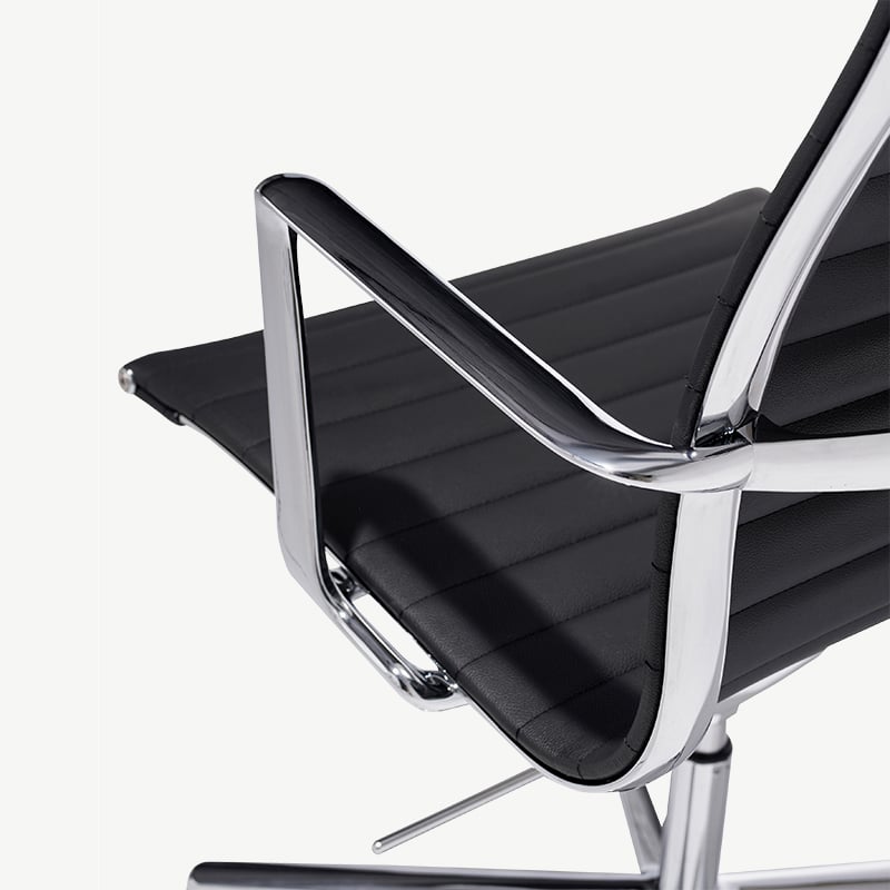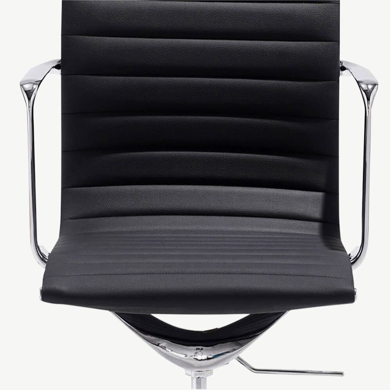 Supported by a robust chrome metal frame, the Ava chair exudes mid-century charm while ensuring durability. Its sleek design and faux leather upholstery make it a versatile piece that enhances any modern office setting with elegance and functionality.