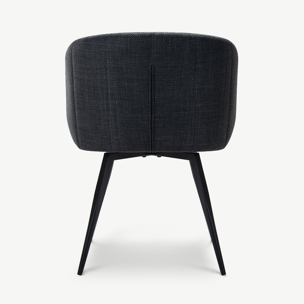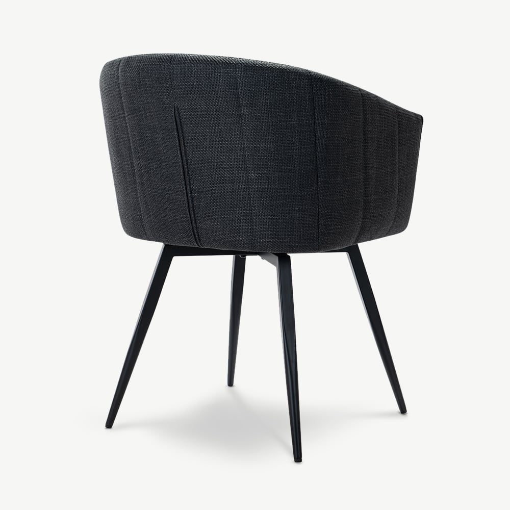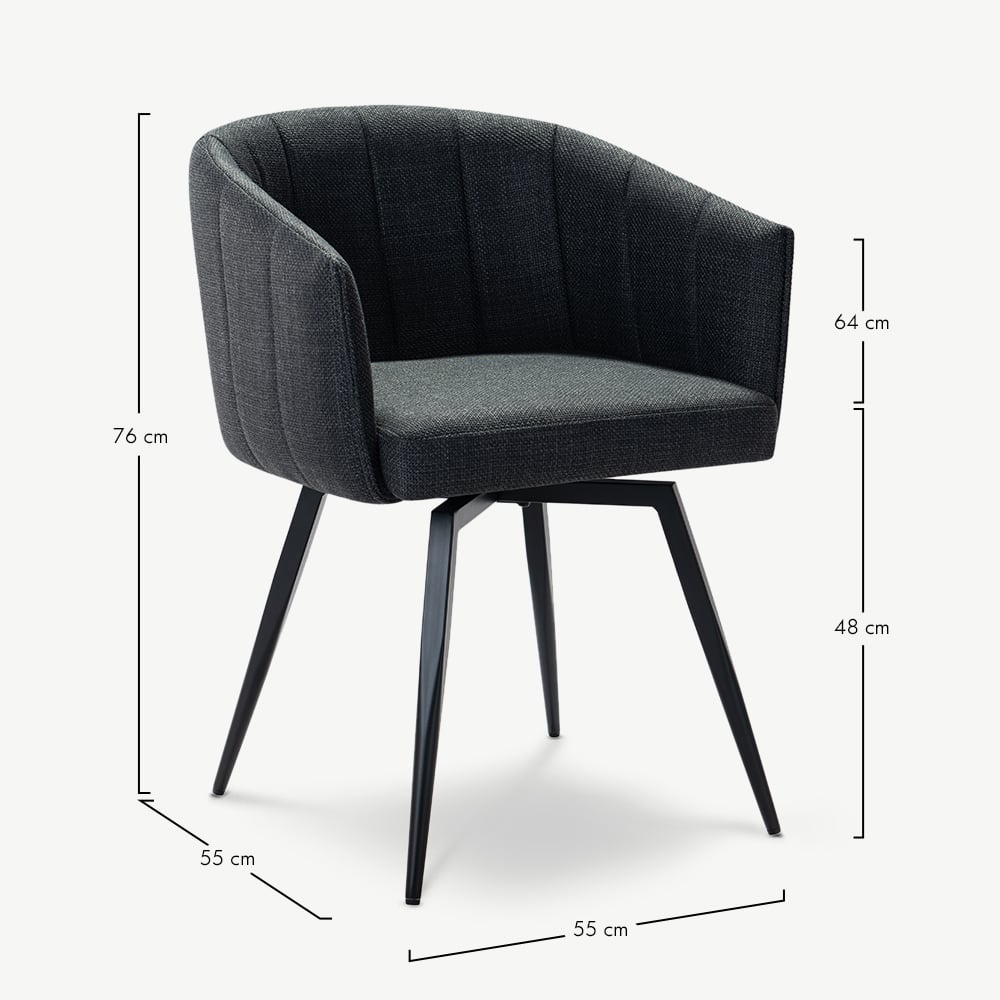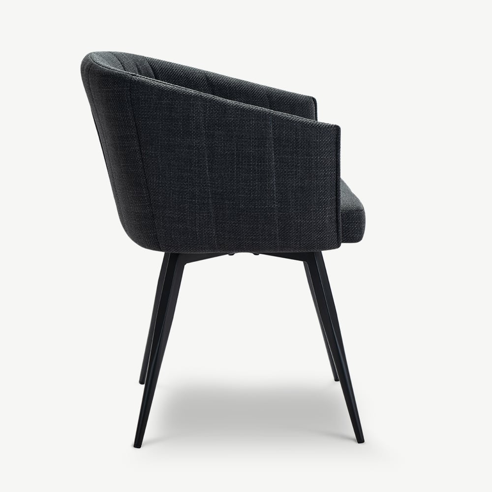 Ben Swivel Dark Grey Fabric Dining Armchair with Black Coated Metal Legs