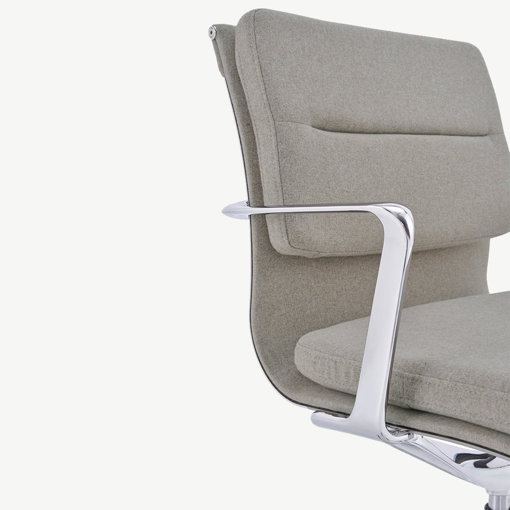 Smooth beige upholstery meets the cool sheen of chrome in a design that feels both understated and refined. The Bern Office Chair captures mid-century inspiration with its lowback silhouette and soft cushioning, offering the perfect balance of comfort and style. Blending functionality with timeless aesthetics, this chair is a versatile choice for any workspace that values design-led detail.