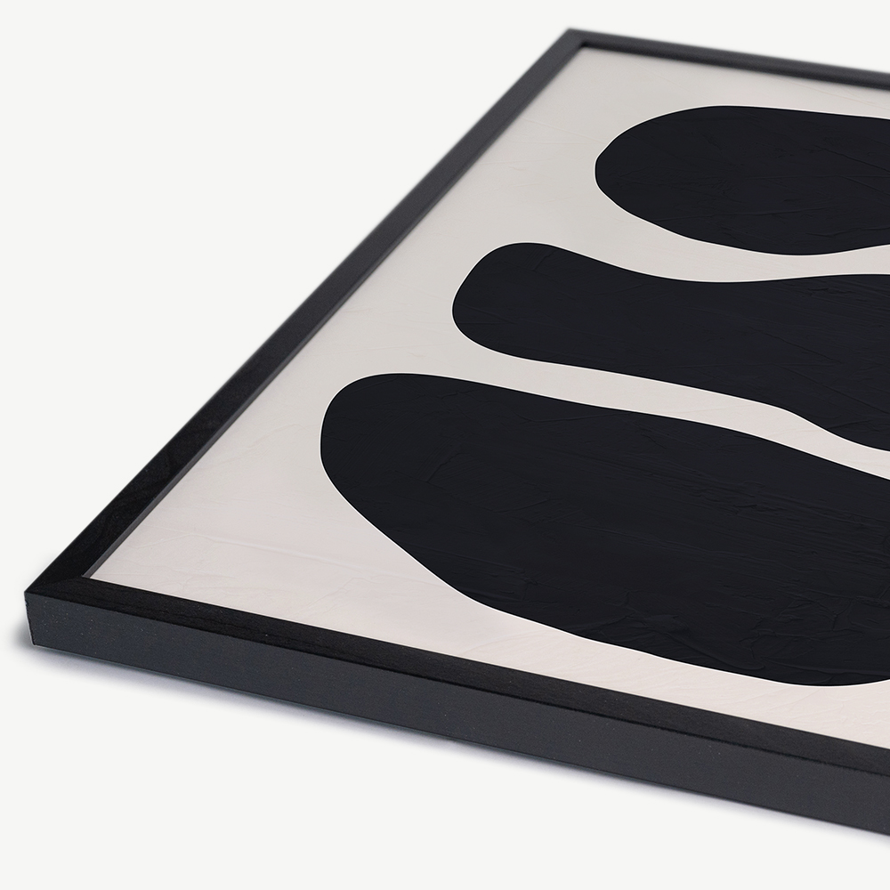 The Black Round Shapes Wall Art is framed in black beechwood, known for its durability and natural beauty. The wooden frame enhances the abstract art, adding depth and dimension, making it a true focal point in your interior.